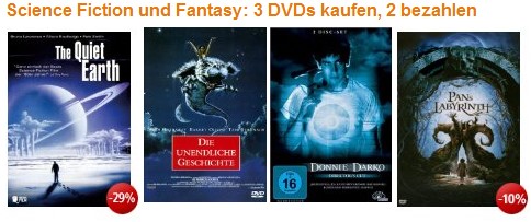 Amazon startet eine neue DVD Aktion: Science Fiction und Fantasy – 3 DVDs kaufen, 2 bezahlen.