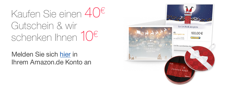 „Wir schenken Ihnen 10 EUR beim Kauf von Amazon.de Geschenkgutscheinen im Wert von 40 EUR oder mehr“