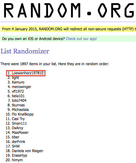 Herzlichen Glückwunsch an Loewenherz197810! Nochmal danke an alle fürs Mitmachen. ![]()