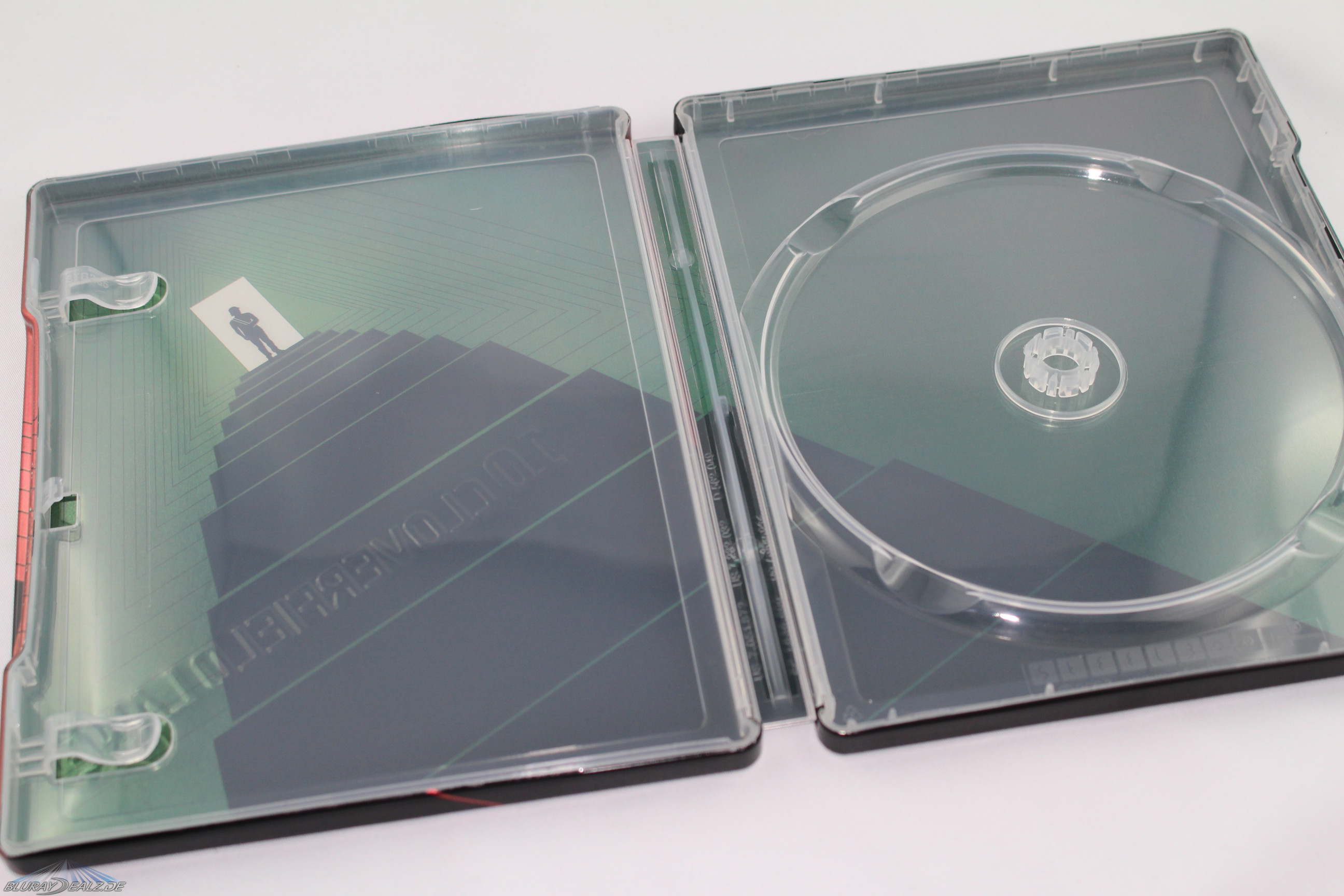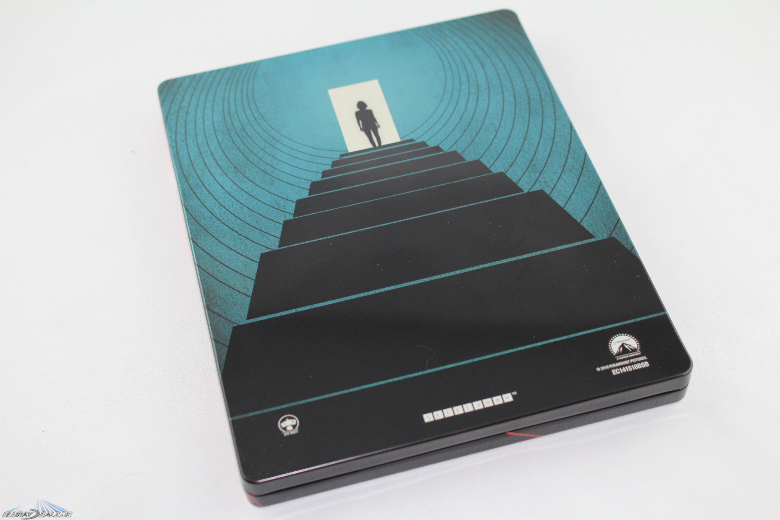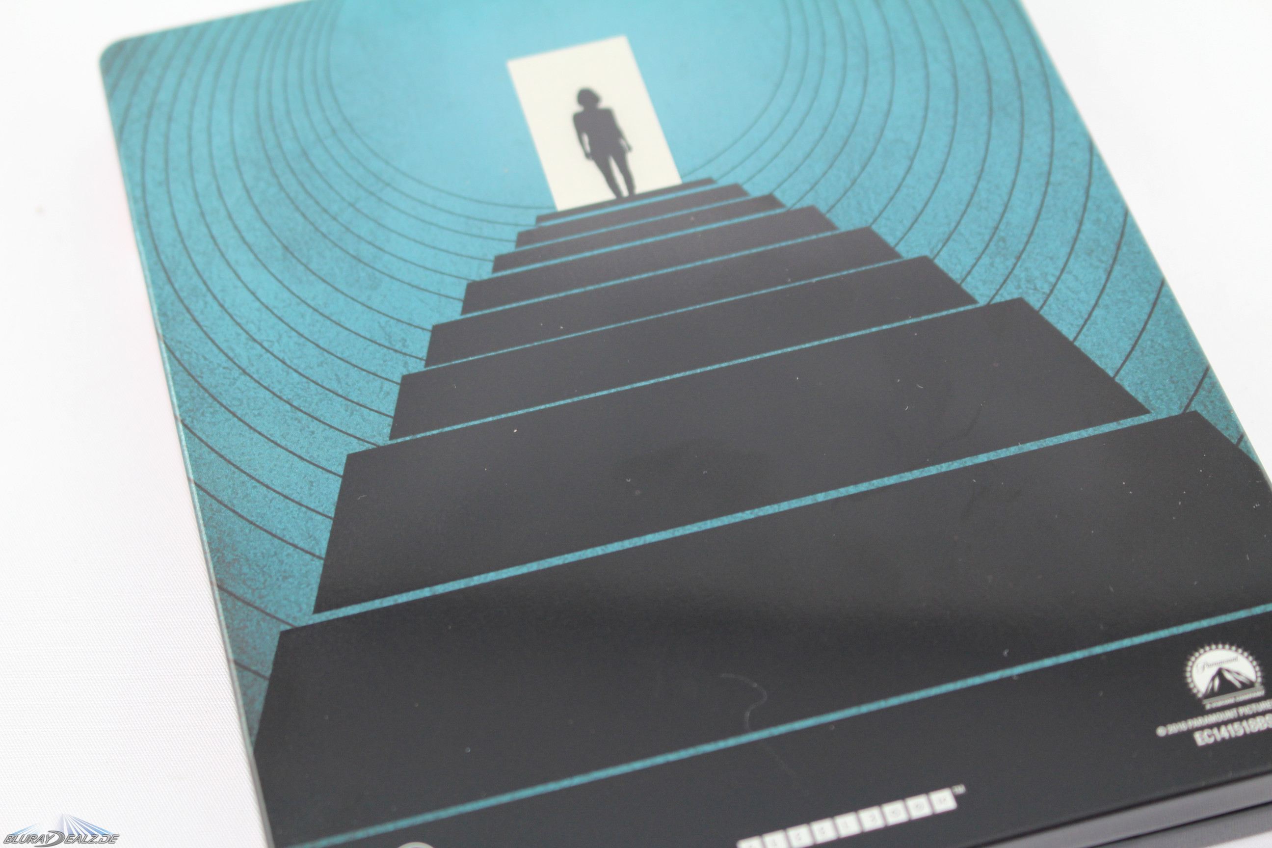 Der Titel ist nach innen geprägt. Der Rest des Steelbooks, bis auf der Spine und 2 kleine Studiohinweise auf der Rückseite, sind Textfrei.