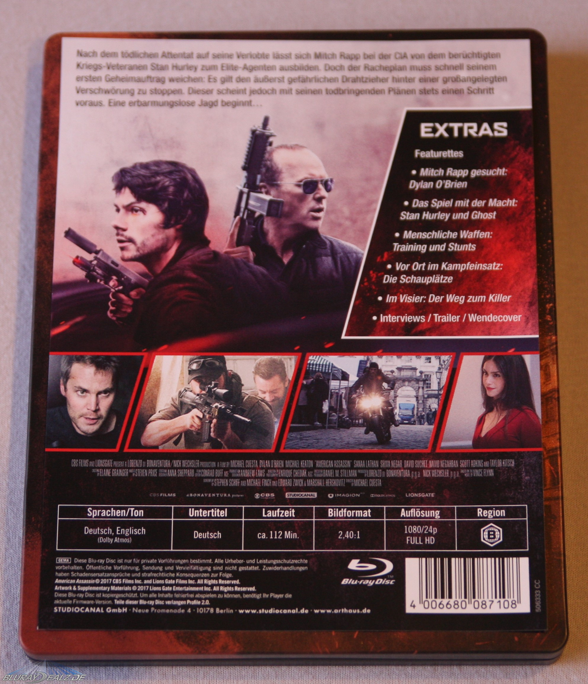 Das Steelbook zu American Assassin erschien ebenso wie die normalen Amaray-Versionen auf Blu-ray und DVD am 22. Februar 2018 und wird nicht exklusiv von einem Shop vertrieben.