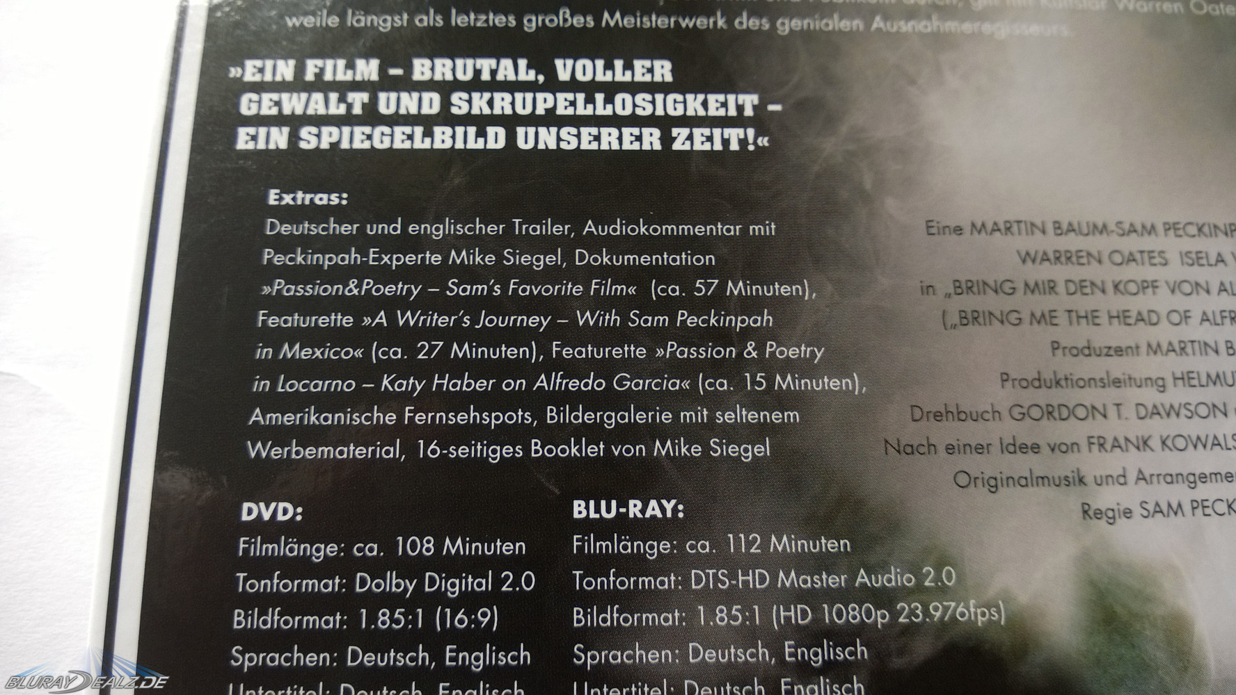 ) veröffentlicht. Das zwar dünne, dennoch von Mike Siegel (Peckinpah – Experte) geschriebene Booklet weiß mit seinen Hintergrundinformationen zu gefallen. Mike Siegel spricht auch einen deutschen Audiokommentar während des Films ein.