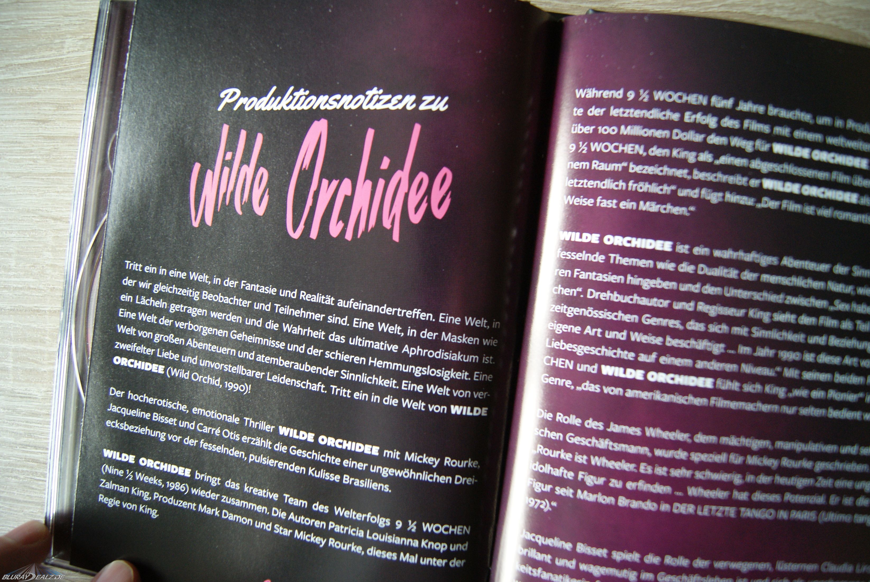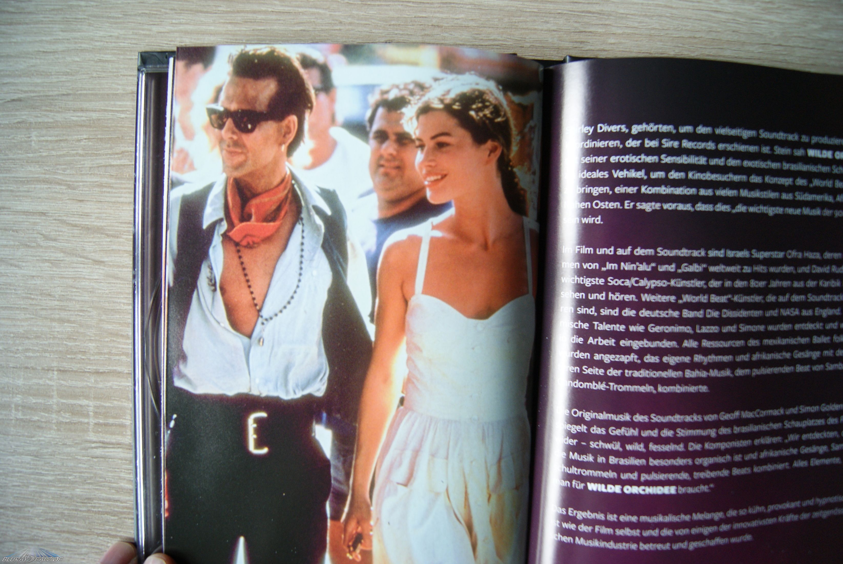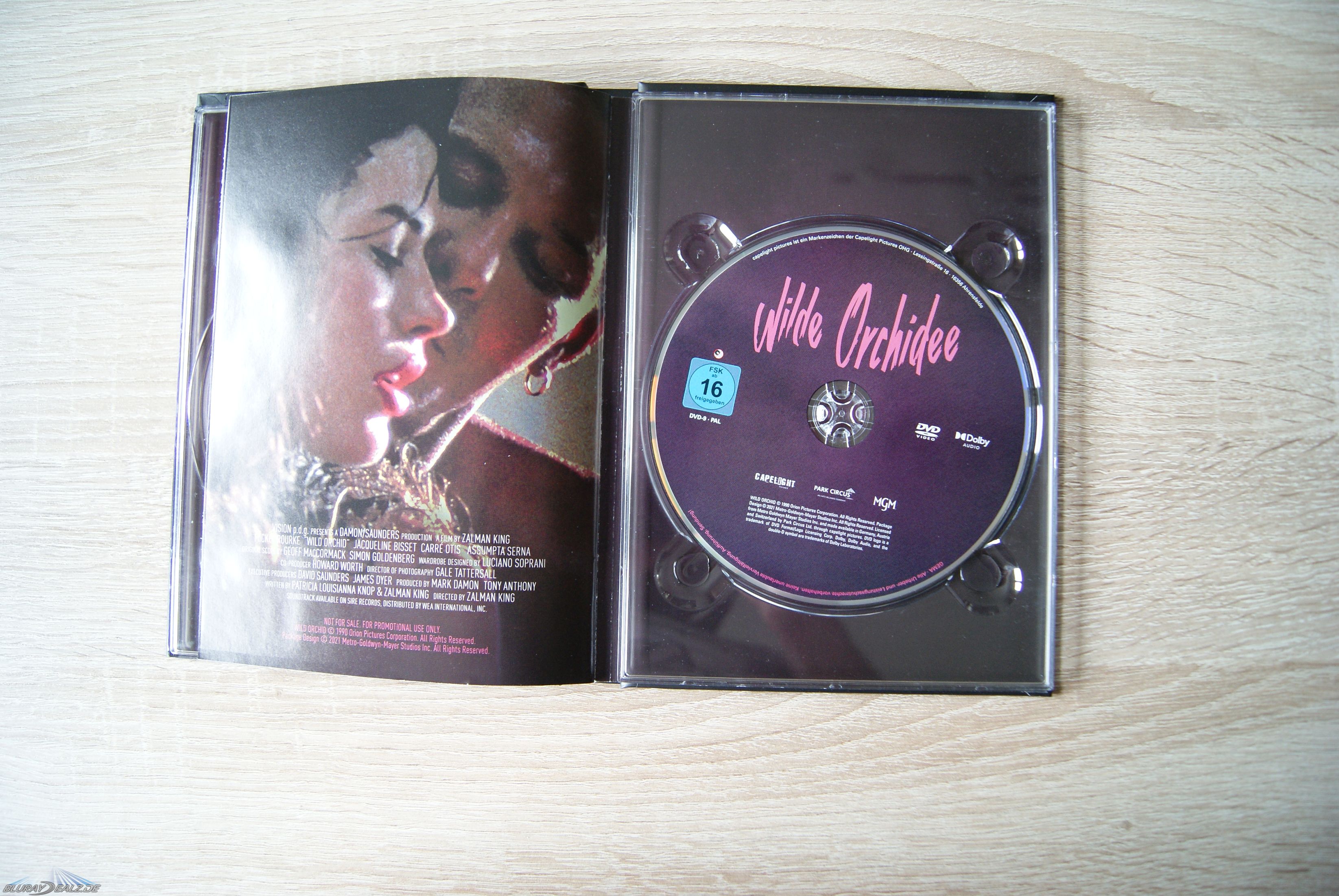 Das Mediabook zu „Wilde Orchidee“ verfügt über einen FSK-Flatschen auf der Einschweißfolie und einer lose beiliegen Infokarte auf der Rückseite. Diese enthält alle Infos zum Film und die Spezifikationen. Extras sucht man hier leider vergeblich.