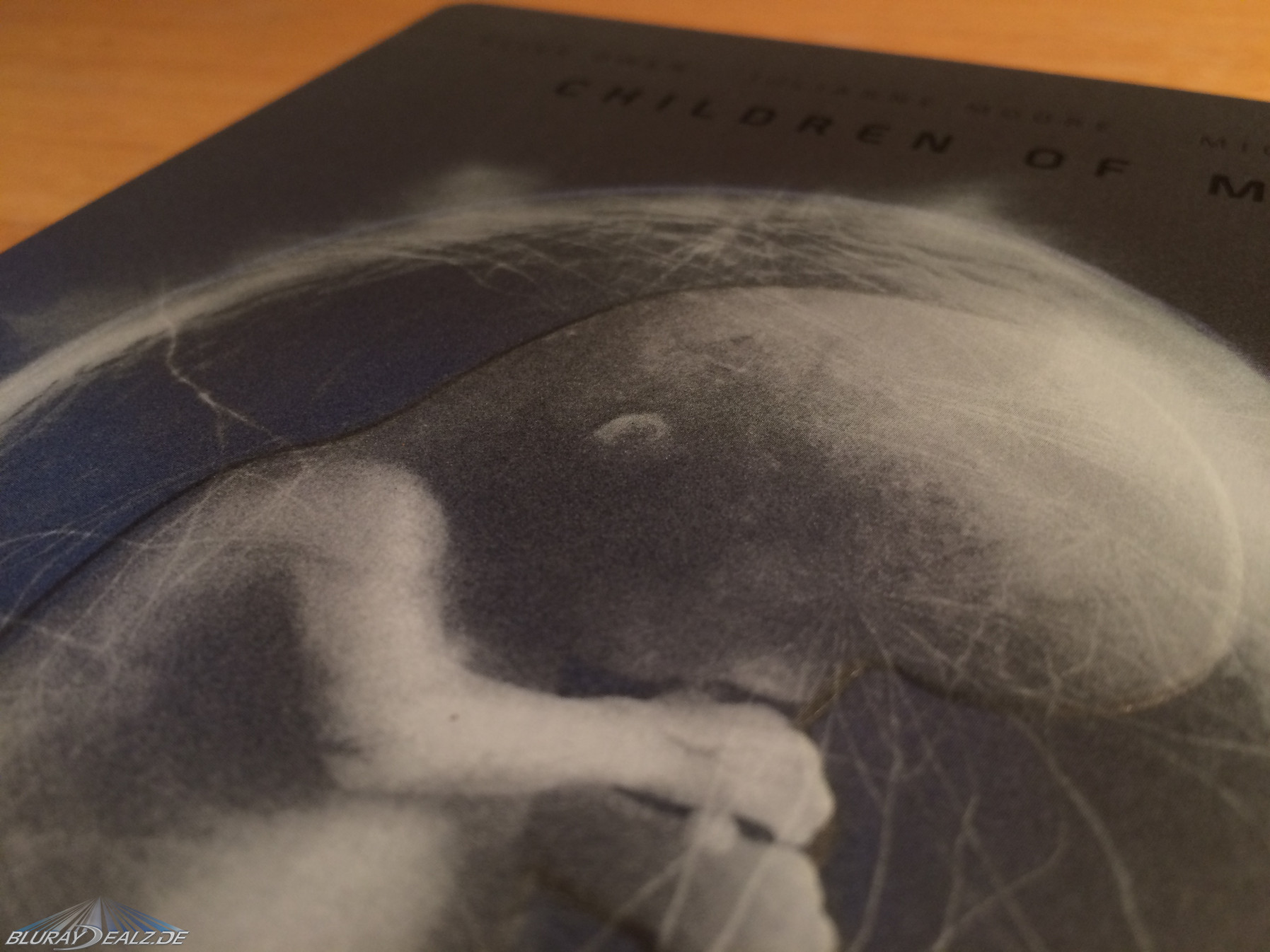 Das Children of Men Steelbook war anfangs Zoom exklusive, ist inzwischen aber bei Zavvi erhältlich. Das Steelbook begeistert sobald man es in die Hand nimmt. Das Steelbook ist toll geprägt. Der Fötus und der Uterus heben sich toll hervor. Auch das sehr schlichte Design aus silber und weiß passt sehr schön zu der Stimmung des Films.