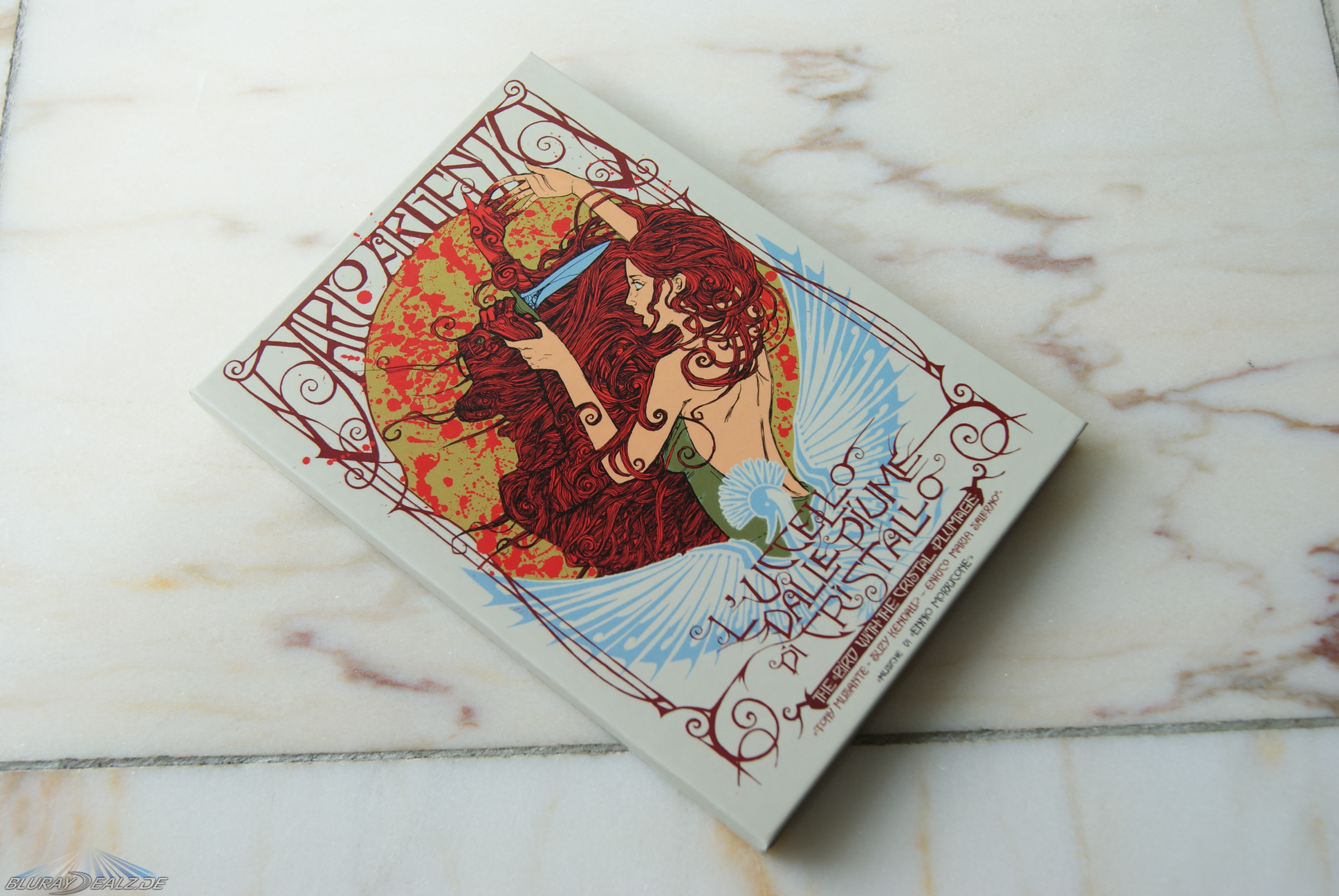 Beide Mediabook sind auf dem Frontcover im gleichem Stil gehalten wie bereits „Opera“ und zwar mit einem in Spotgloss gehaltenen Motiv, das ebenso auch leicht erhaben ist und somit auch seinen haptischen Reiz bietet. Zu diesen drei Mediabooks gesellt sich noch ein viertes, sozusagen der Lord Voldemort in der Reihe – wenn ihr mich versteht. Ist auf jeden Fall indiziert.