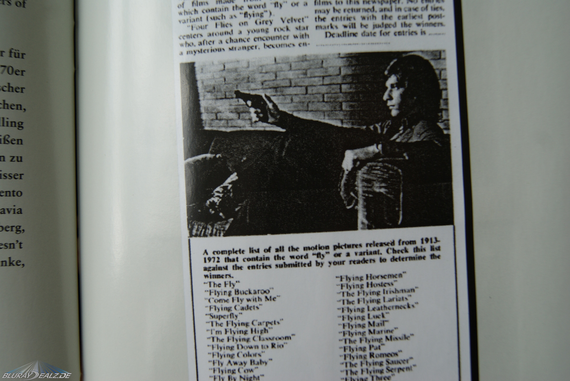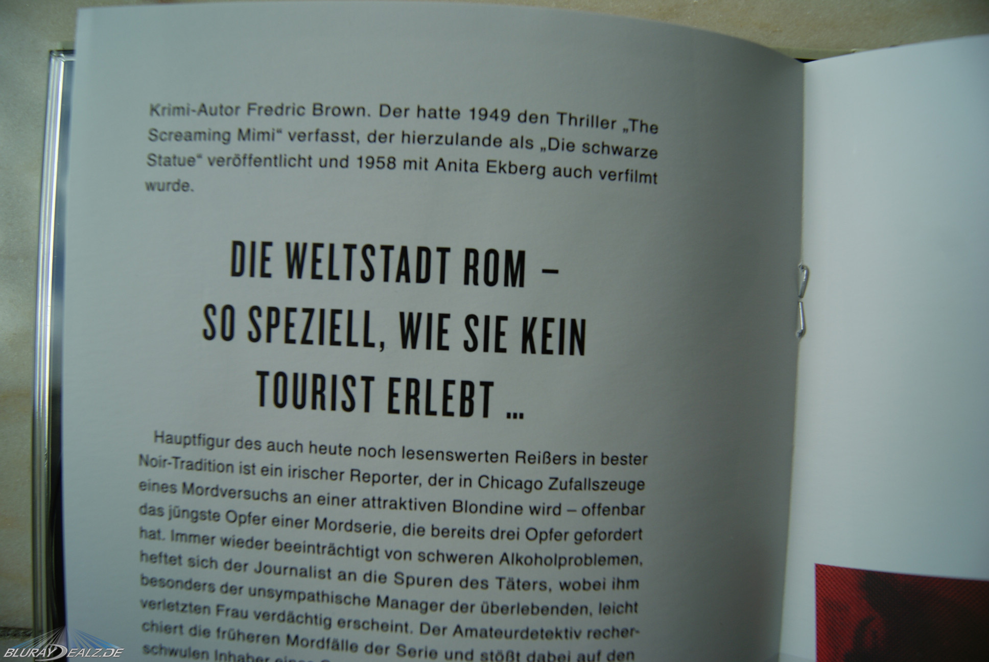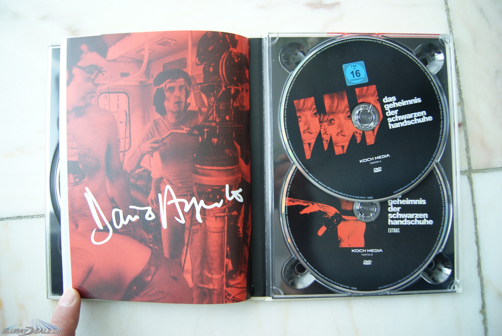 Also wirklich Buchcharakter! Ein Text von Paul Poet (?) liest sich hervorragend. Aufgehübscht wird das Ganze durch Zeitungsberichte (die Spinnen doch die Marketingleute!) und Fotos vom Film/der Produktion. Die Discs haben alle, wenn auch minimalistisch gehalten, unterschiedliche Prints.