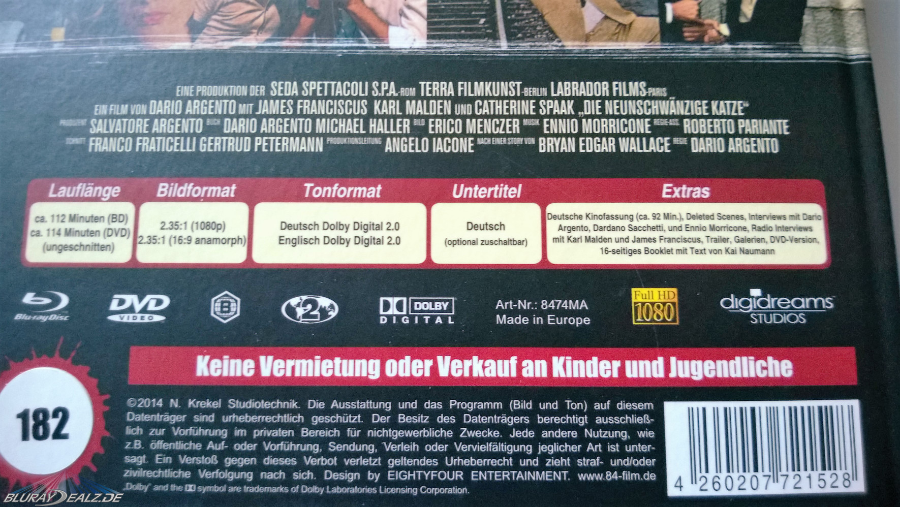 Bei den Handschuhen hat es sich Koch Media zum Glück schon verkniffen, da falsch, und bei der Katze steht es zwar auch auf der Front mit drauf, aber Bryan – Edgar Wallace (Der Sohn von nur Edgar Wallace) hat an diesen Filmen soviel Beteiligung wie Argento Oscar´s gewonnen, nämlich keine.