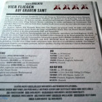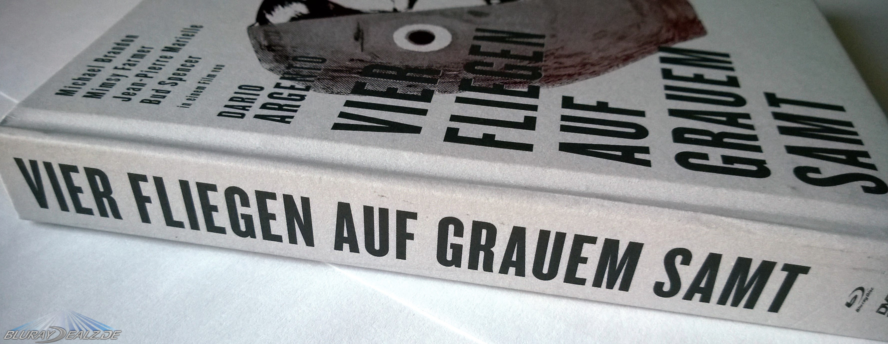 Leider fehlt hier, zugunsten der Einheitlichkeit der Serie, die Buchstruktur der Oberfläche und die Einstanzungen bei den Motiven (hier die Fliegen auf der Rückseite). Ansonsten sind Spine (hier ist allerdings die Schriftgröße kleiner gewählt) und Back identisch. Interessanterweise fehlte bei mir übrigens ein FSK-Flatschen…
