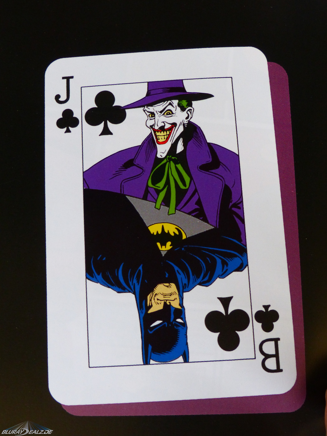 Aufgeteilt ist das Buch in drei Teile: 1. Comic, 2.: Goodies aus dem Archiv (z.B. der erste Auftritt des Jokers von 1940) und die Blu-ray. Diese ist hinten sicher und ordentlich im Buch eingefasst, lässt sich aber gut lösen. Die J-Card hinten ist mit den üblichen Klebepunkten angebracht und bräuchte gar nicht gelöst werden (mit Ausnahme der Lasche vorne). Der Comic selber macht einen schönen neuen Eindruck.