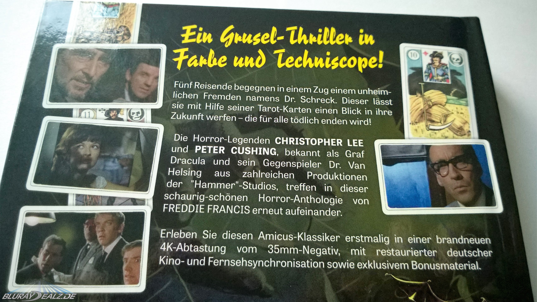 Die Todeskarten des Dr. Schreck stammt aus den Schmieden der Amicus Film Productions, die auch für die ersten Tales From The Crypt und dem ersten Leinwandauftritt eines gewissen Dr. Who (Daleks – Invasion Erath: 2150 A.D.) bekannt sind. Als Gegenpart bzw. Abklatsch der HAMMER Film Productions ging Amicus zumindest in die Geschichte ein, da ihre Horroranthologien den (relativ) gleichen Stil der Produktionen aufwies und man sich bei den bekannten Gesichtern der Hammerfilme bediente (z.B. Peter Cushing und Christopher Lee).