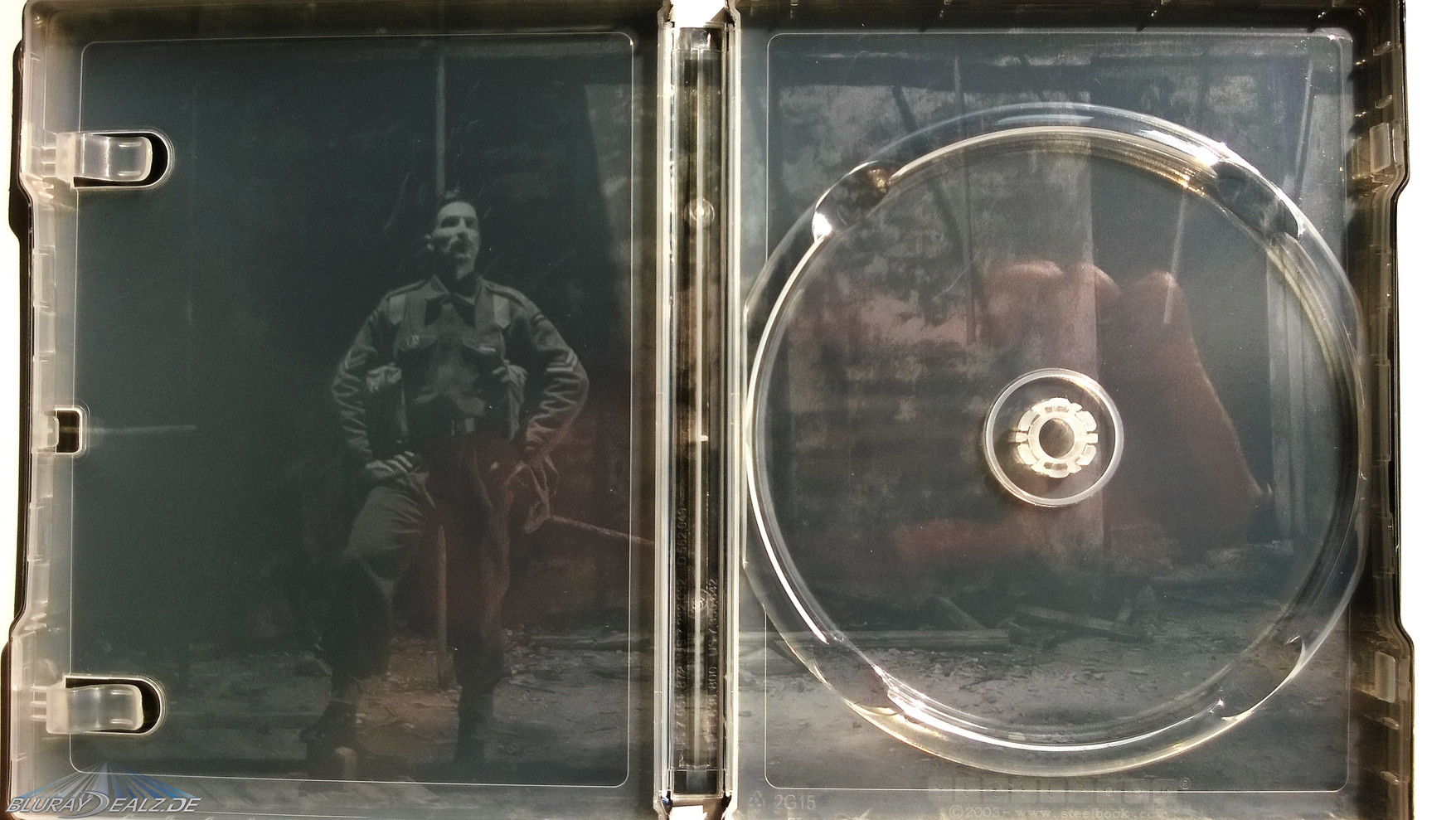 Aber hey, das soll nicht heissen, dass diese Steelbooks nicht ihre Daseinsberechtigung haben, aber es sind nunmal nicht die Burnerteile, die man sich gewünscht hätte. Das normale ist auch nicht schwarz bzw. grau, was einem die Produktbilder suggerieren, sondern blaumetallicsilbermatt mit spiegelnder und fingerabdruckanziehender Oberfläche. Aber sonst hat das Teil keine Effekte, keine Prägung, kein garnichts. Aber einen schlechten unscharfen Druck bei den Splittern vorn und hinten sowie bei der Handgranate auf der Rückseite.