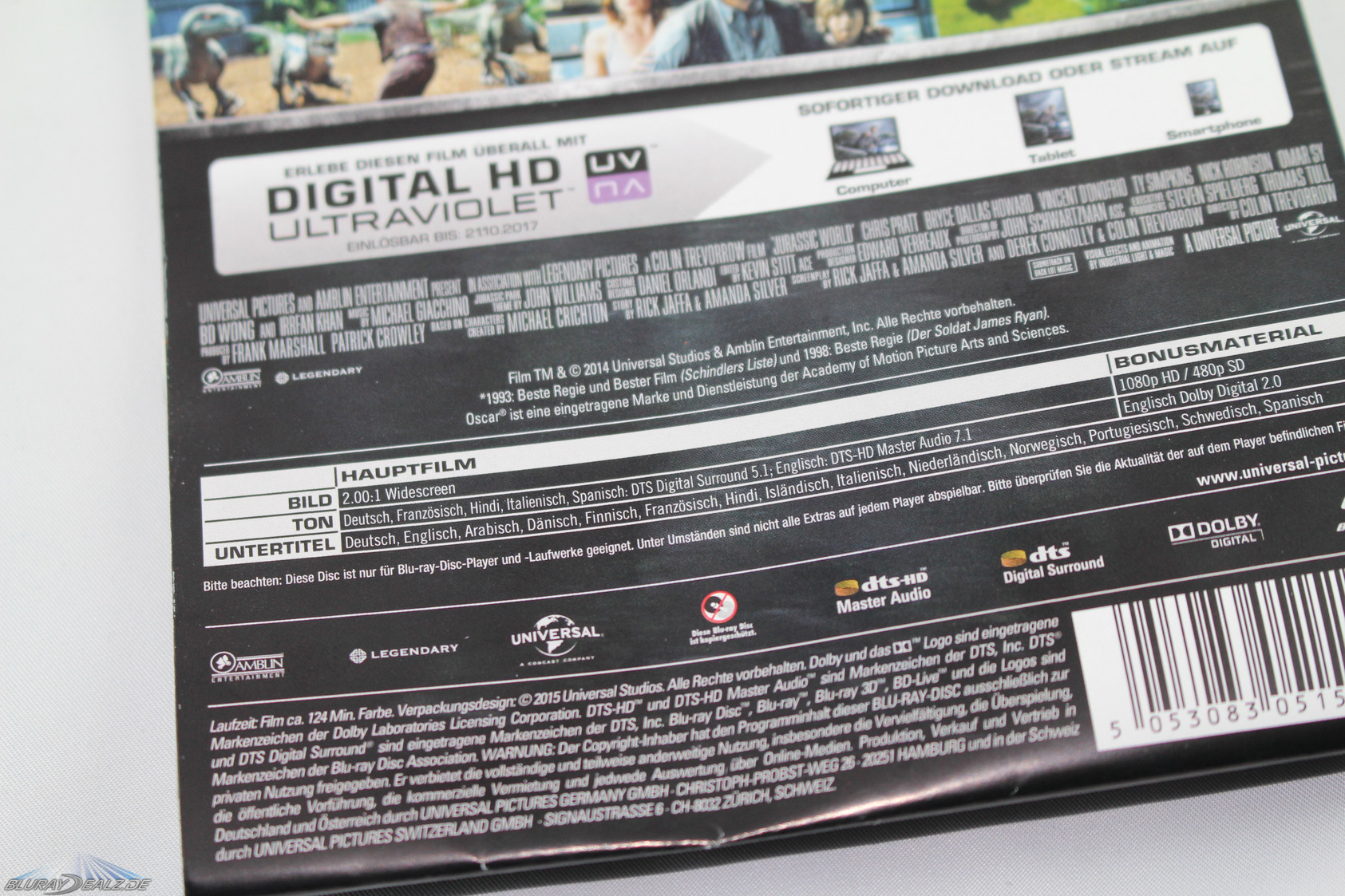 Am 22. Oktober 2015 veröffentlicht Universal Pictures das Steelbook zum Film Jurassic World. Das Steelbook hat einen Innendruck und ein Backartwork. Leider keine Prägung.