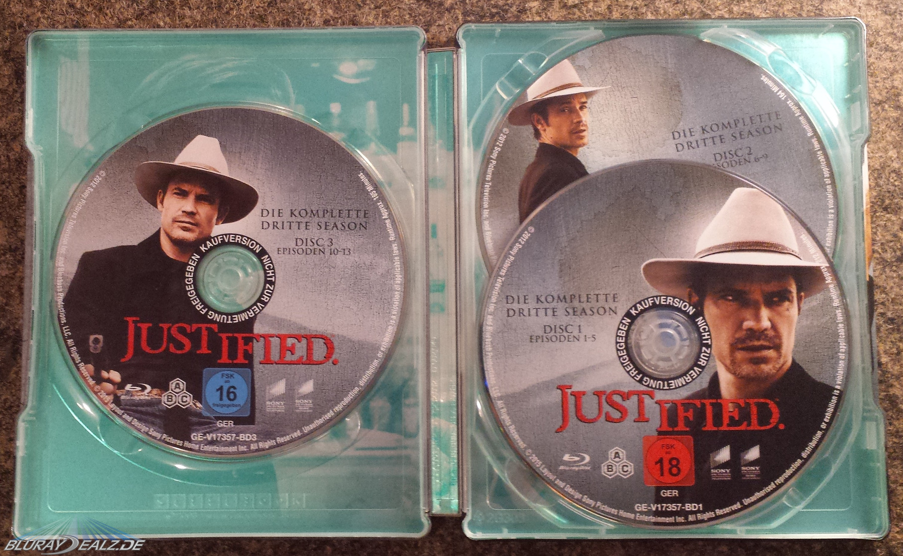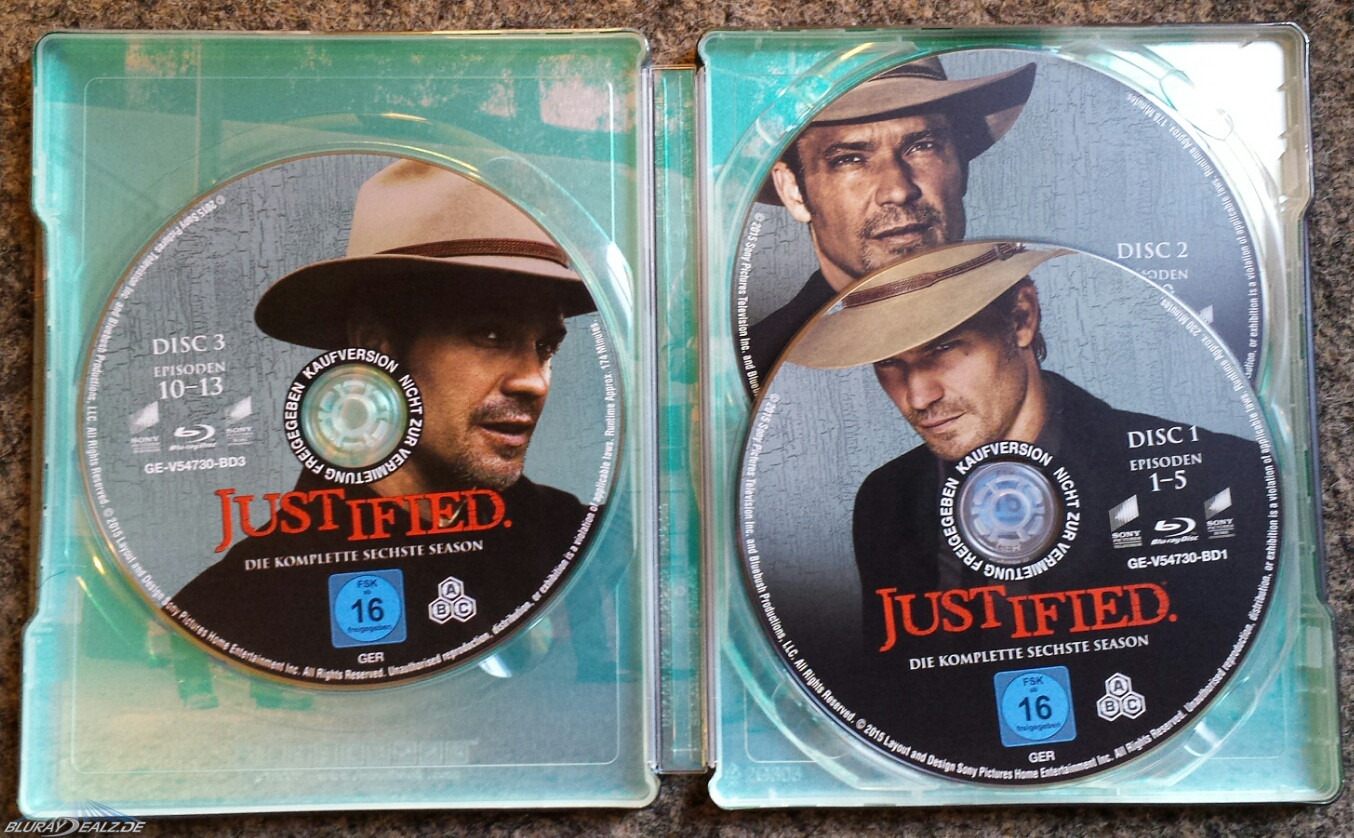 Die Justified-Steelbooks erschienen mit Ausnahme der 6. Staffel am 15. Oktober 2015 in Deutschland exklusiv bei MediaMarkt/Saturn zu einem Preis von 17,99€ pro Staffel.