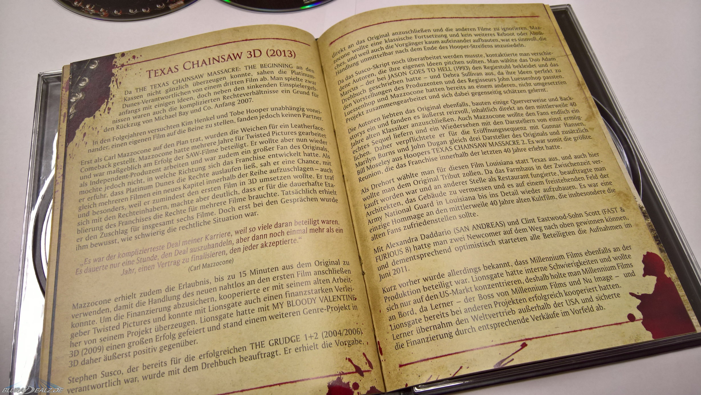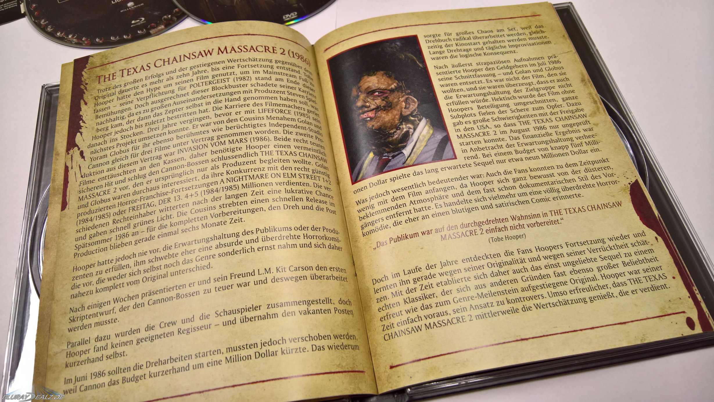 Drinnen finden wir ein 36-seitiges (!) Booklet mit wirklich interessanten Geschichten zur Entstehung aller acht TCM-Filme. Stark gemacht!