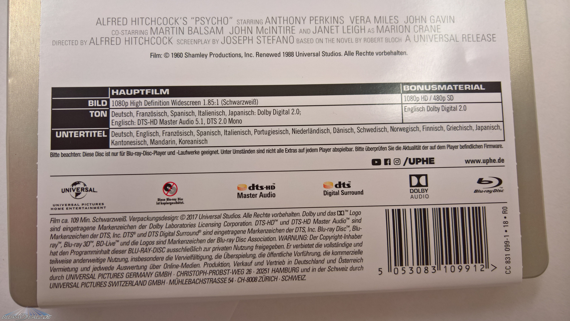 Aufgrund der neuen Universalwave hat Psycho auch ein neues Steelbook bekommen, welches ähnlich wie das The Game Steelbook mit Prägung und Spotgloss veredelt wurde.
