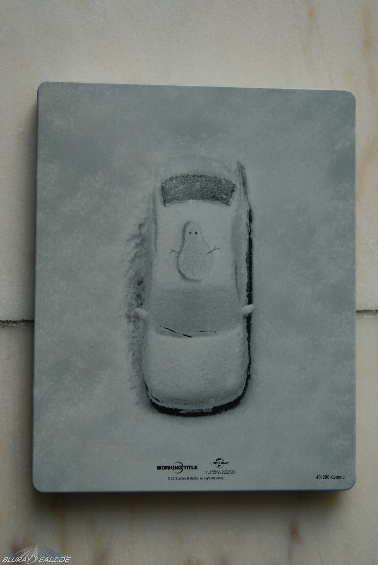 Hinten sehen wir ein verschneites Auto mit einem Schneemann auf dem Dach aus Vogelperspektive, das Bild hat eine nette Tiefenwirkung. Innen holt das Steelbook die Stärke des Filmes heraus und zeigt uns eine atemberaubende Landschaftsaufnahme. Im Steelbook liegt die internationale Disc.