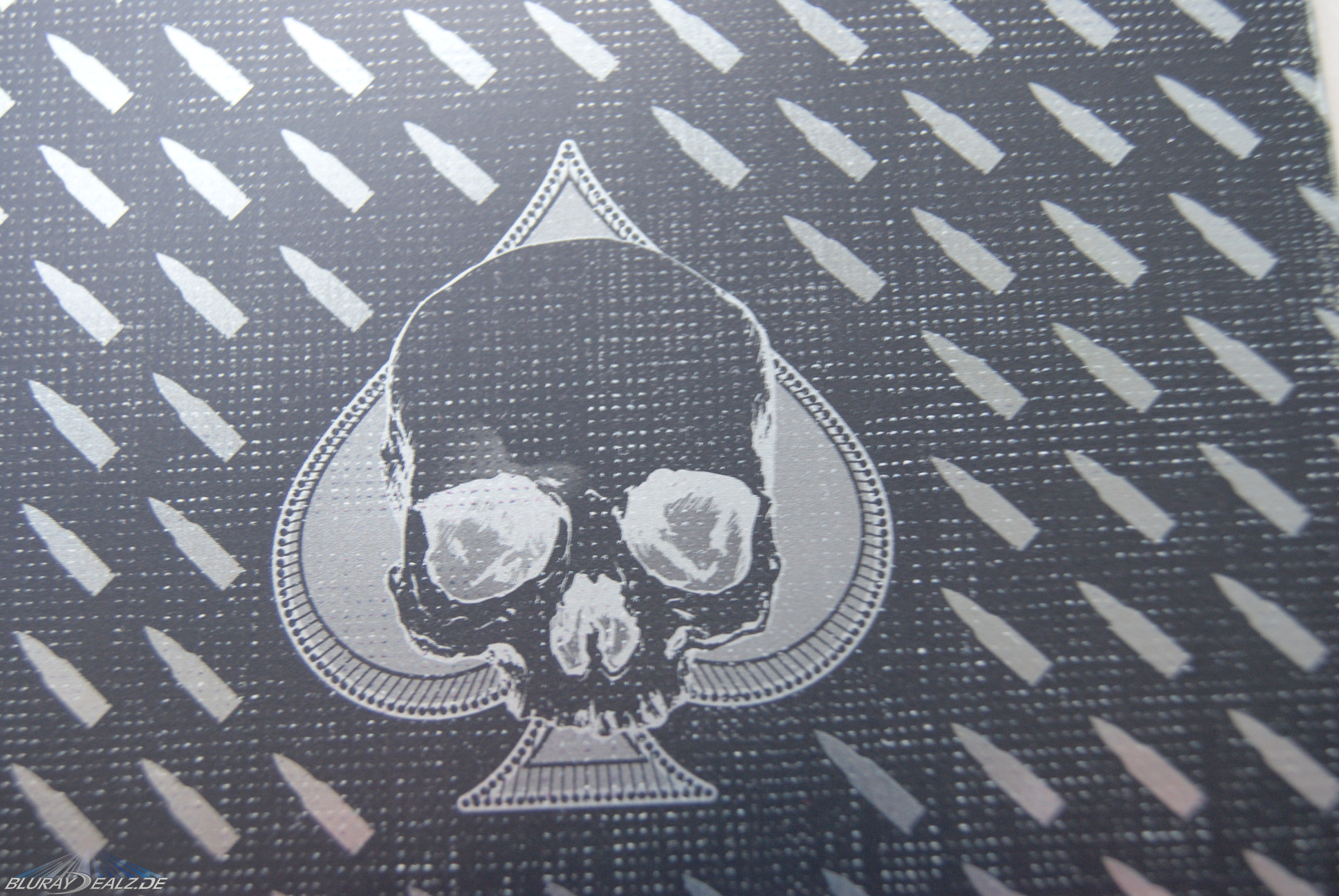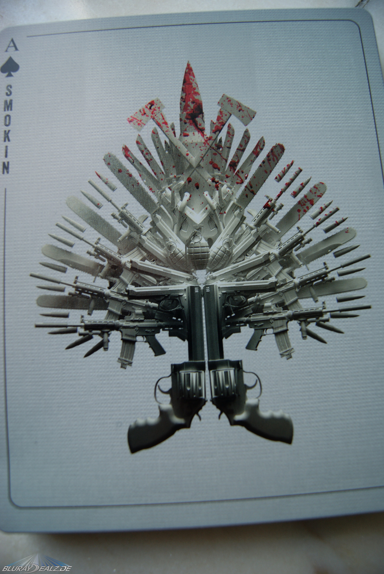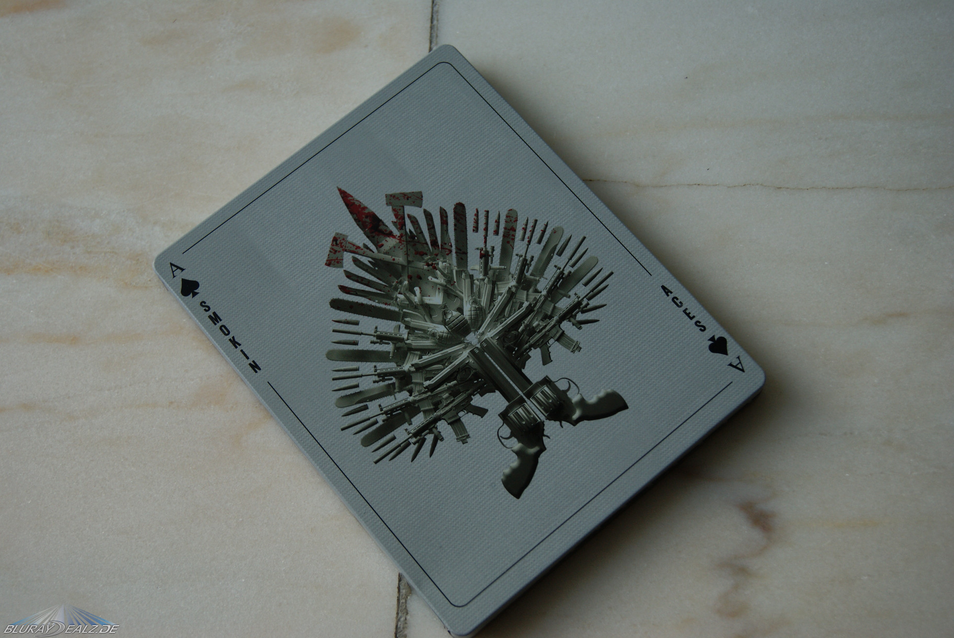 Das Steelbook in Spielkartenoptik (Pik-As) ist genial. Das Pik-Symbol – aus Waffen zusammengestellt (erinnert an den eisernen Thron in Schusswaffen