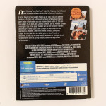 Das Frontmotiv entspricht der früheren Blu-ray-Verpackung, hat aber einen gänzlich anderen Farbstil: Wo vorher Orange dominierte (siehe Disc – so sah das aus), ist es nun kühles Blau/Grau, durchbrochen vom gelben Filmtitel. Der Druck ist körnig und wirkt stellenweise unscharf, das entspricht aber dem ursprünglichen Motiv und ist keine Qualitätsfrage. Der Titelschriftzug glänzt, die blau-grauen Elemente ebenfalls leicht, der Rest ist matt gehalten.
