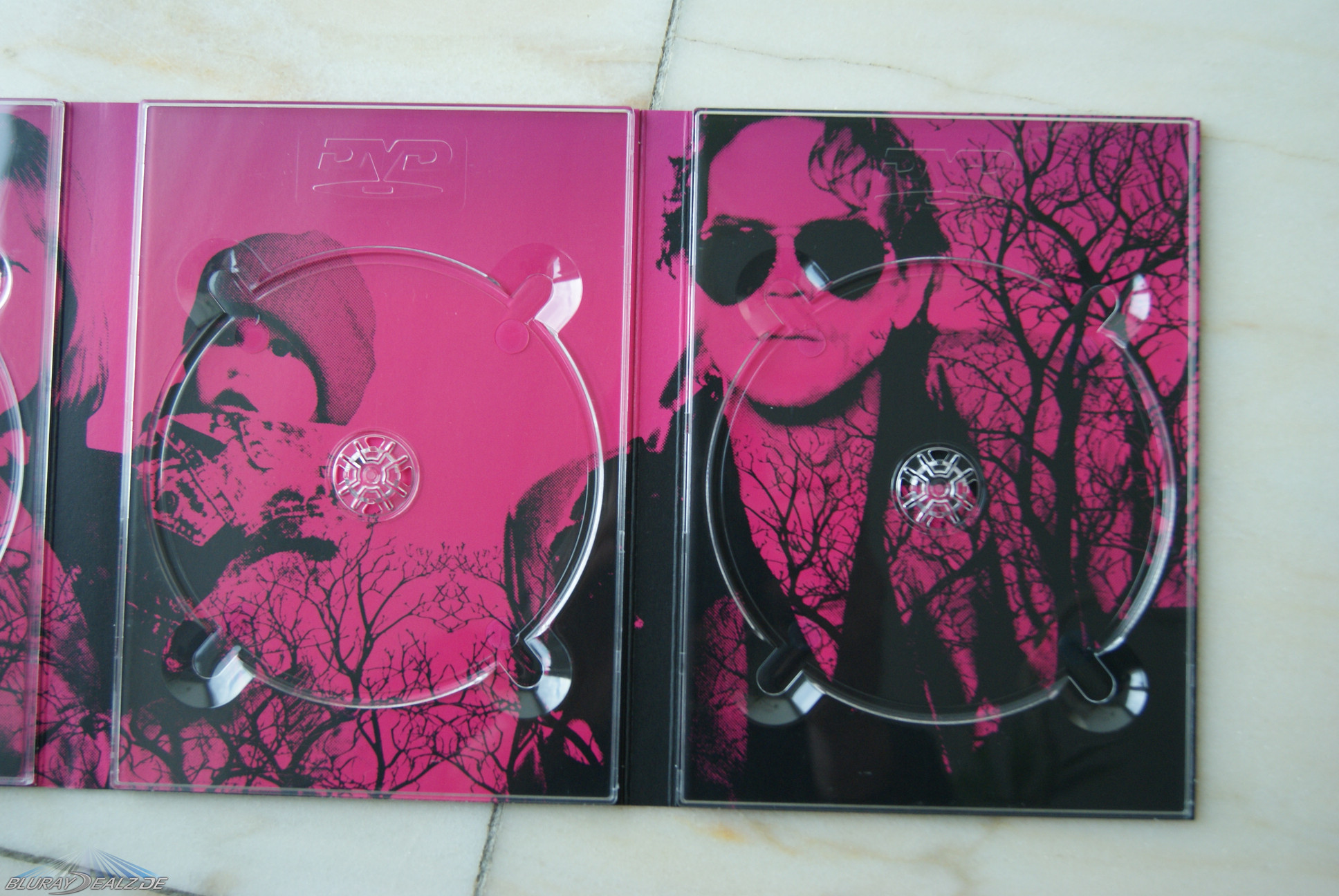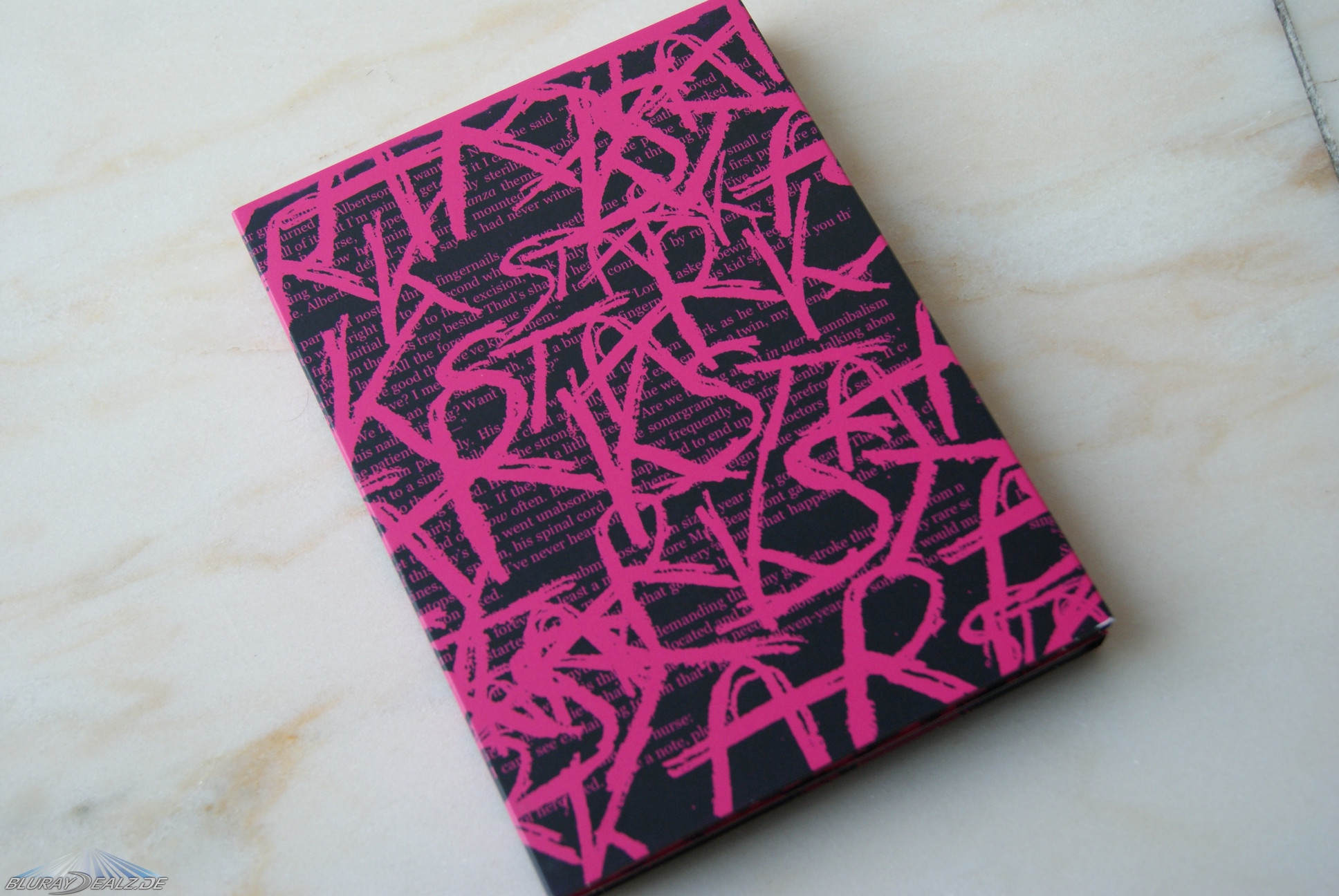 Der im Oktober letzten Jahres verdiente FSK-Sticker – bis dahin war der Film tatsächlich noch indiziert – befindet sich unkompliziert auf der Einschweißfolie. Die Edition verfügt über einen recht stabilen Schuber (es wär auch noch etwas dicker gegangen) im Design des alten Filmplakats – die Rückseite halt alle nötigen Daten zum Inhalt bereit. Der Digipack im Inneren hat ebenfalls ein passendes Design: Die Außenseiten sowie die ersten beiden Innenseiten zeigen englisch und mit der Schreibmaschine beschriebene Manuskriptseiten, die von den wild händisch geschriebenen STARK-Schriftzügen unleserlich überdeckt sind.