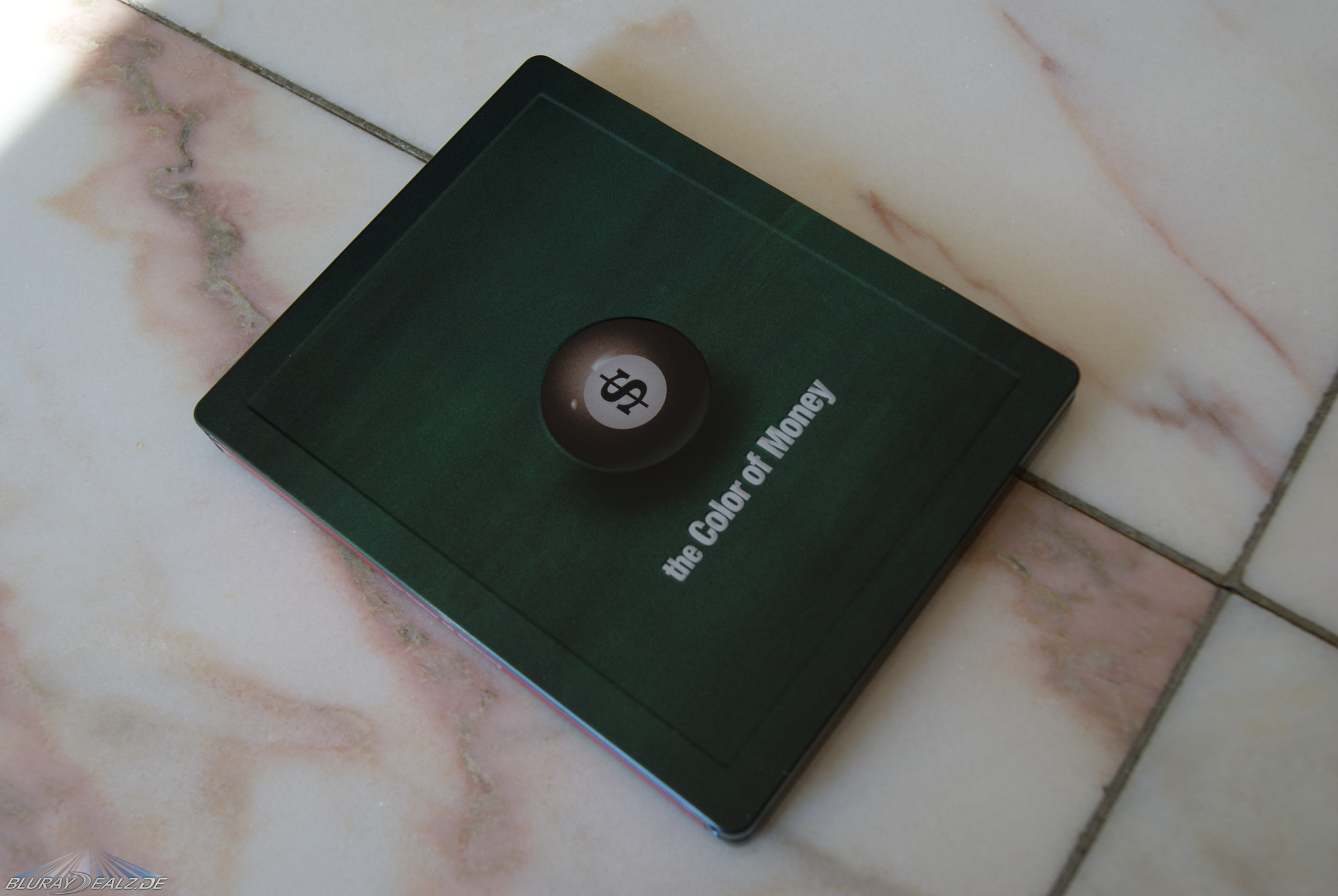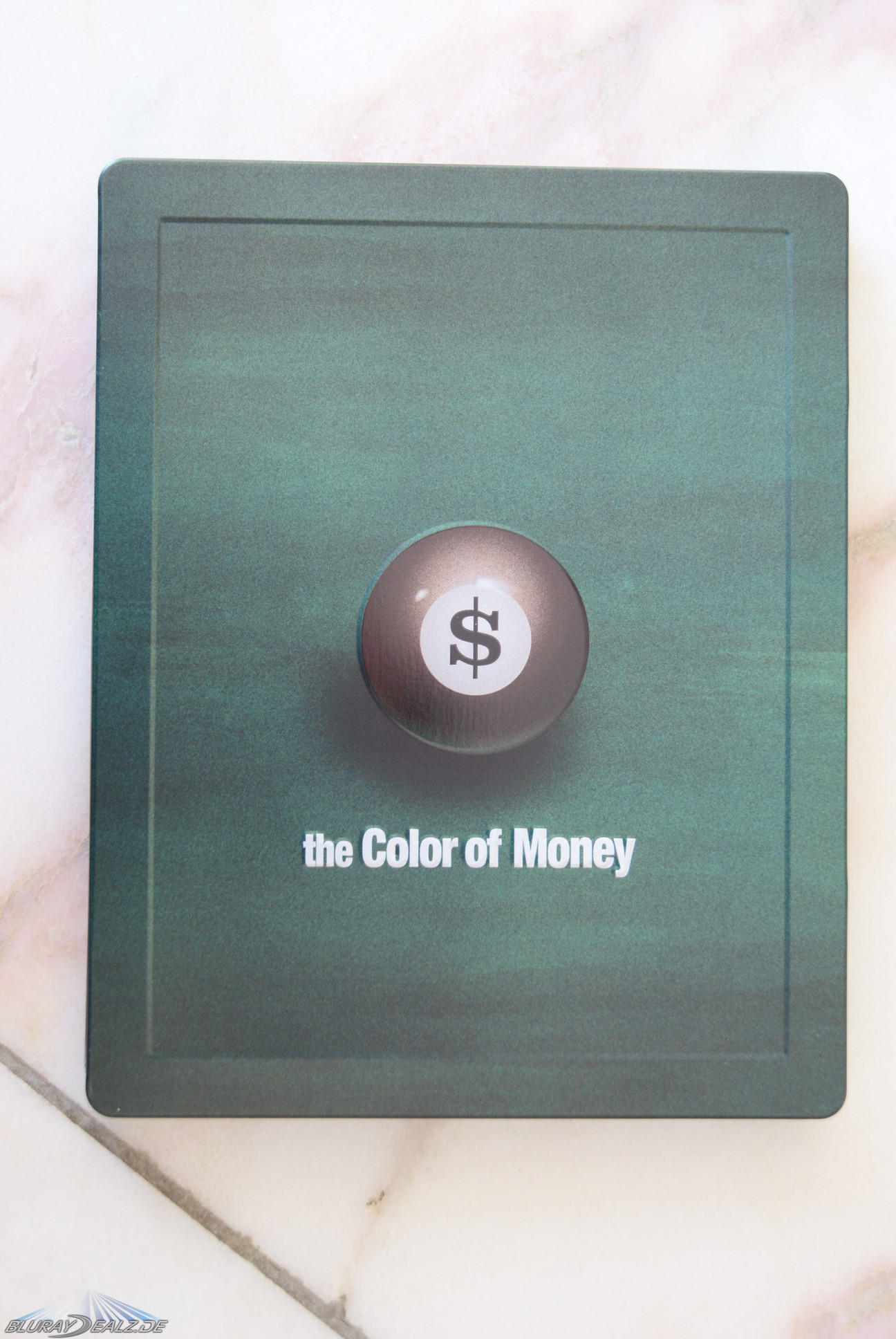 Das “The Colour of Money”-Steelbook ist von einer aus fester Pappe bestehenden und unten geschlossenen ¼ Slip J-Card umgeben die alle Informationen zum Film bereithält und in der man das Steel auch hinterher wieder gut verstauen kann. Das Steel ist sowohl vorne als auch hinten in einem schönen, satten und matten Grün gehalten. Hier hätte eigentlich nur noch ein Samtüberzug gefehlt