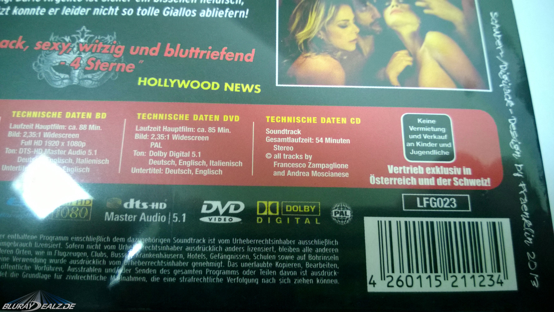 Und da hat sich LFG doch glatt einfallen lassen, zumindest wenn man den Überlieferungen im Internet trauen kann, das Anno 2014 erschienene auf 2000 Stück limitierte 3-Disc-Digibook in Deutschland um eine 1000 Stück umfassende Limitierung zu erweitern. Tja. Also wenn man sich meine Bilder so anschaut, kann man leider nichts von Limitierung lesen, und ein Repack gab es ebenso wenig. Es handelt sich um den selbigen Schuber wie bei der Schweizer/Ösiversion!