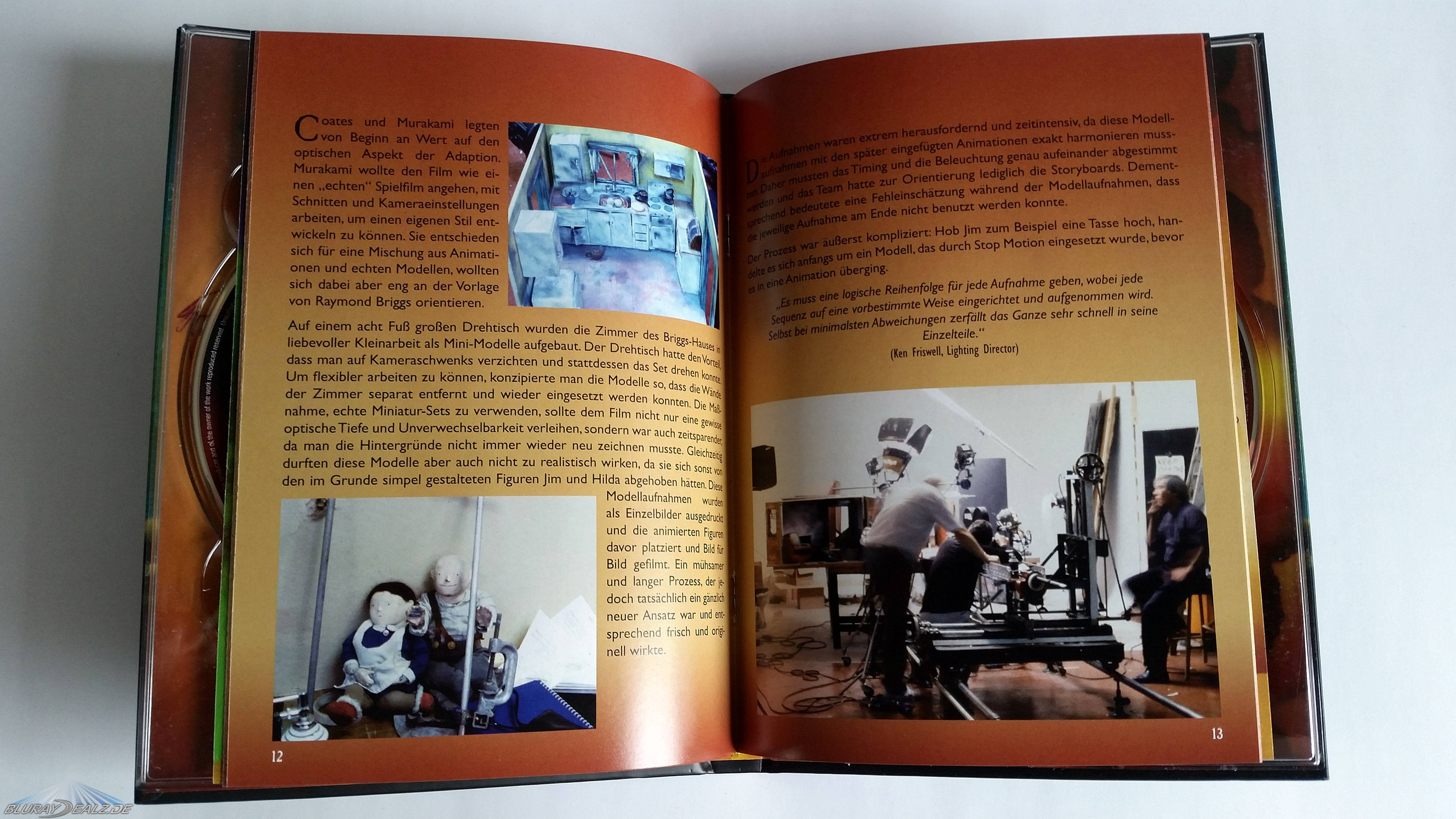 ). Hier hat es Capelight besser gelöst, in dem sie das Deckblatt nur lose ihren Produkten mit beilegen. Das 26-seitige Booklet ist recht stimmig gehalten. Neben viel Text (geschrieben von Tobias Hohmann) und einigen Bildern, können auch die Screenshots mit eingefügten Sprechblasen überzeugen und runden das Gesamtpaket auf. Bei hochgeklappten Booklet ergibt sich überdies ein relativ einfach gezeichnetes Gesamtbild.