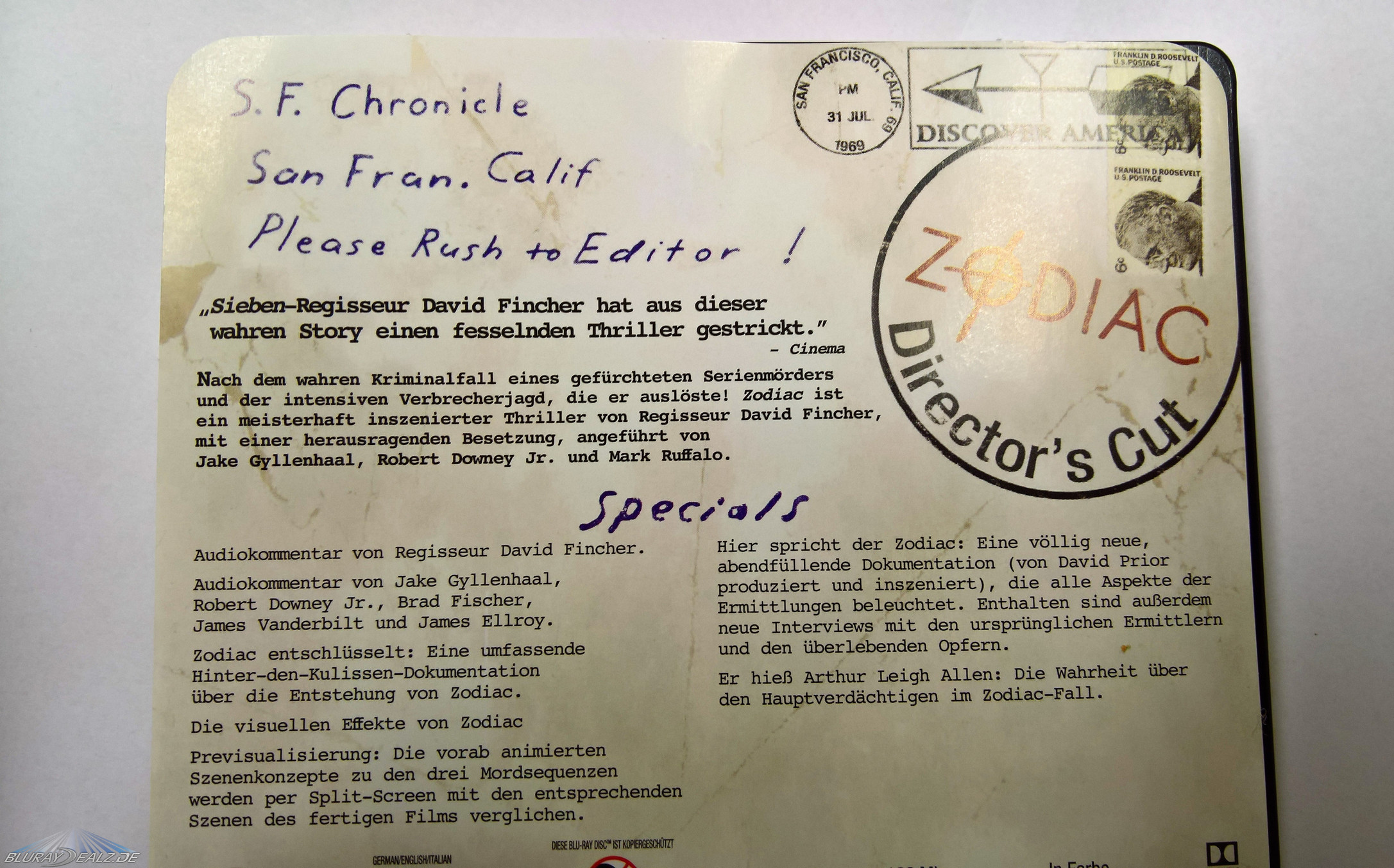 Am 16.11.2017 erschien, lalilala, Amazon-Exklusiv, ein Steelbook zu dem Film Zodiac – Die Spur des Killers.