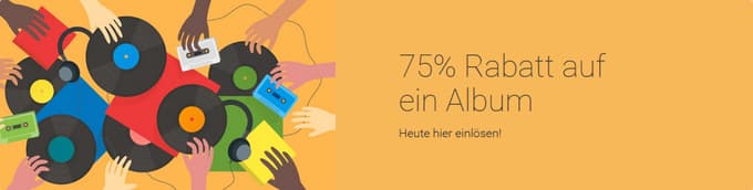 Im Google Play Store erhält man ab heute bis zum 05.05.2016 75 % Rabatt auf ein Album seiner Wahl.