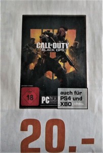 Saturn Berlin Stationär verkauft Call of Duty : Black Ops 4 PC/PS4/XBO für 20,- €.