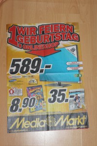 Amazon kontert MediaMarkt.de: 1. Geburtstag Onlineshop – Multimedia Prospekt