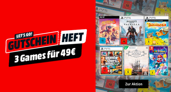 MediaMarkt.de bietet eine neue Spieleaktion im Rahmen der Gutscheinheft-Aktion. Titel bestehend aus Playstation 4/5, Xbox Series X/One, Nintendo Switch und PC Spiele.