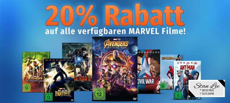 Mueller.de: 20% auf alle verfügbaren MARVEL Filme gültig am 16.11.2018