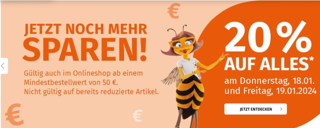 Mueller.de: 20% auf alles 18.01. – 19.01.24 ab 50€ Bestellwert (nur im Onlineshop)