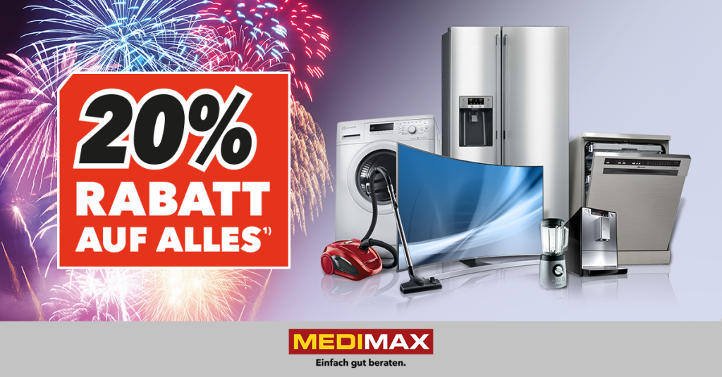 In einigen ausgewählten MediMax Filialen erhält man vom 02.01.-03.01.2017 20 % Rabatt auf div. vorrätige Artikel.