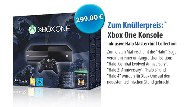 Xbox One Konsole + Halo Masterchief Collection für nur 299 Euro.