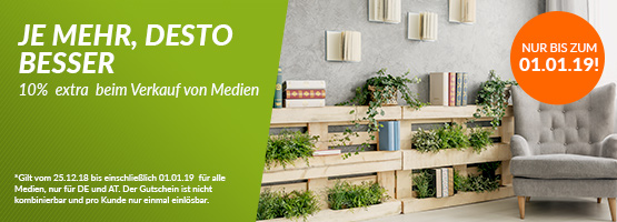 *Gültig vom 25.12.18 bis einschließlich 01.01.19 für alle Medien, nur für DE und AT. Der Gutschein ist nicht kombinierbar und pro Kunde nur einmal einlösbar.