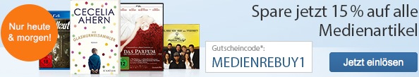 Bis zum 20.06.2016 gibt es bei Rebuy 15% Rabatt auf Medienartikeln