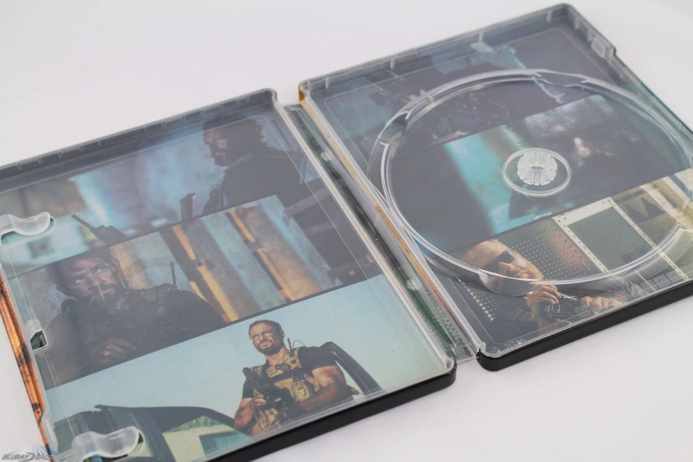 Wird das Steelbook nun erst einmal gestürmt geöffnet, zeigt sich der sehr an Mission Impossible: Rogue Nation erinnernde Innendruck. So werden hier mehrere Szenen aus dem Film gezeigt, was thematisch natürlich gar nicht uninteressant ist, werden so doch hier die verschiedenen Perspektiven der Soldaten dargestellt. Auch in der Gesamtansicht wirkt das Ganze cool und vielleicht auch besser als ein traditioneller Innendruck. Die Druckqualität ist sehr gut.