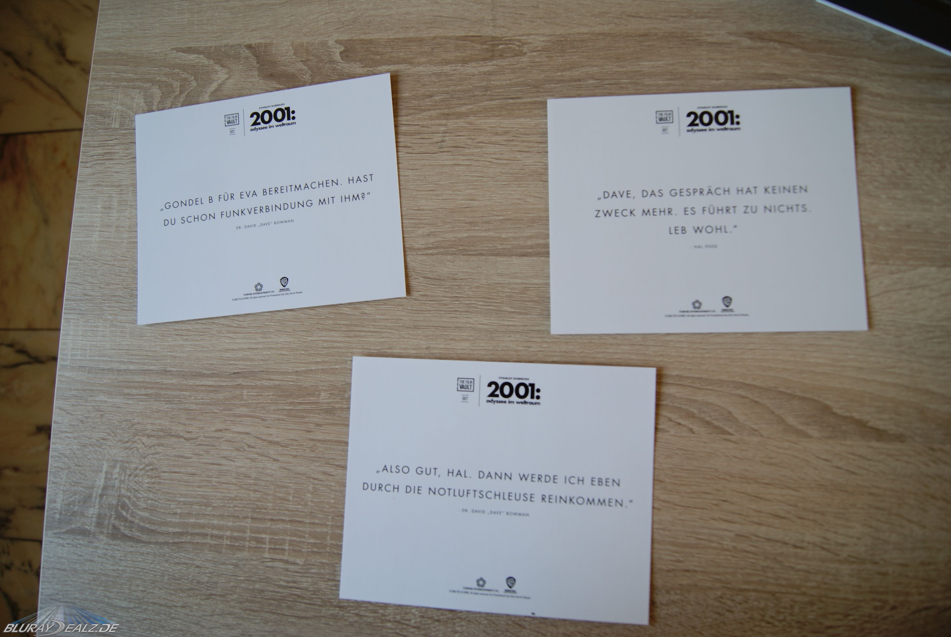 Die großen sieben Artcards zeigen mannigfaltige Motive auf stabiler Pappe in Hochglanz gedruckt. Da sind wirkliche Augenschmankerl dabei. Etwas schade ist es, dass auf der Rückseite nur Zitate aufgeführt sind. Hier hätte man es besser wie bei „Apollo 13“ machen können und die Rückseiten mit diversen interessanten Informationen füllen können. Die Chance wurde hier verpasst.