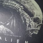 Die Rückseite ist in edle Schwärze getaucht. Nur in der Mitte schält sich der Xenomorph aus dem Schatten und man sieht den vorderen Teil seines Kopfes, mit geiferndem und von Schleim tropfendem Maul. Gruselig.