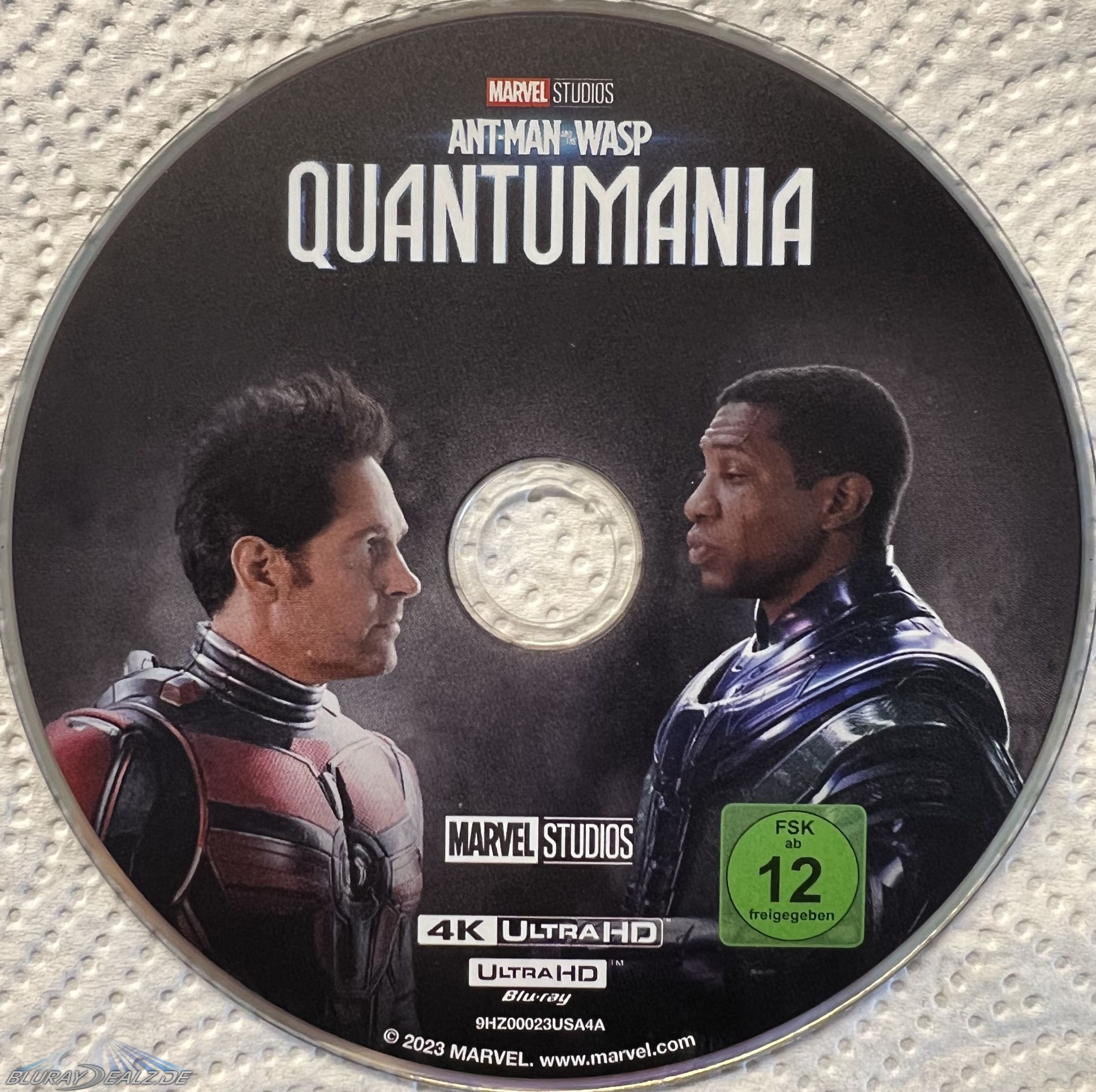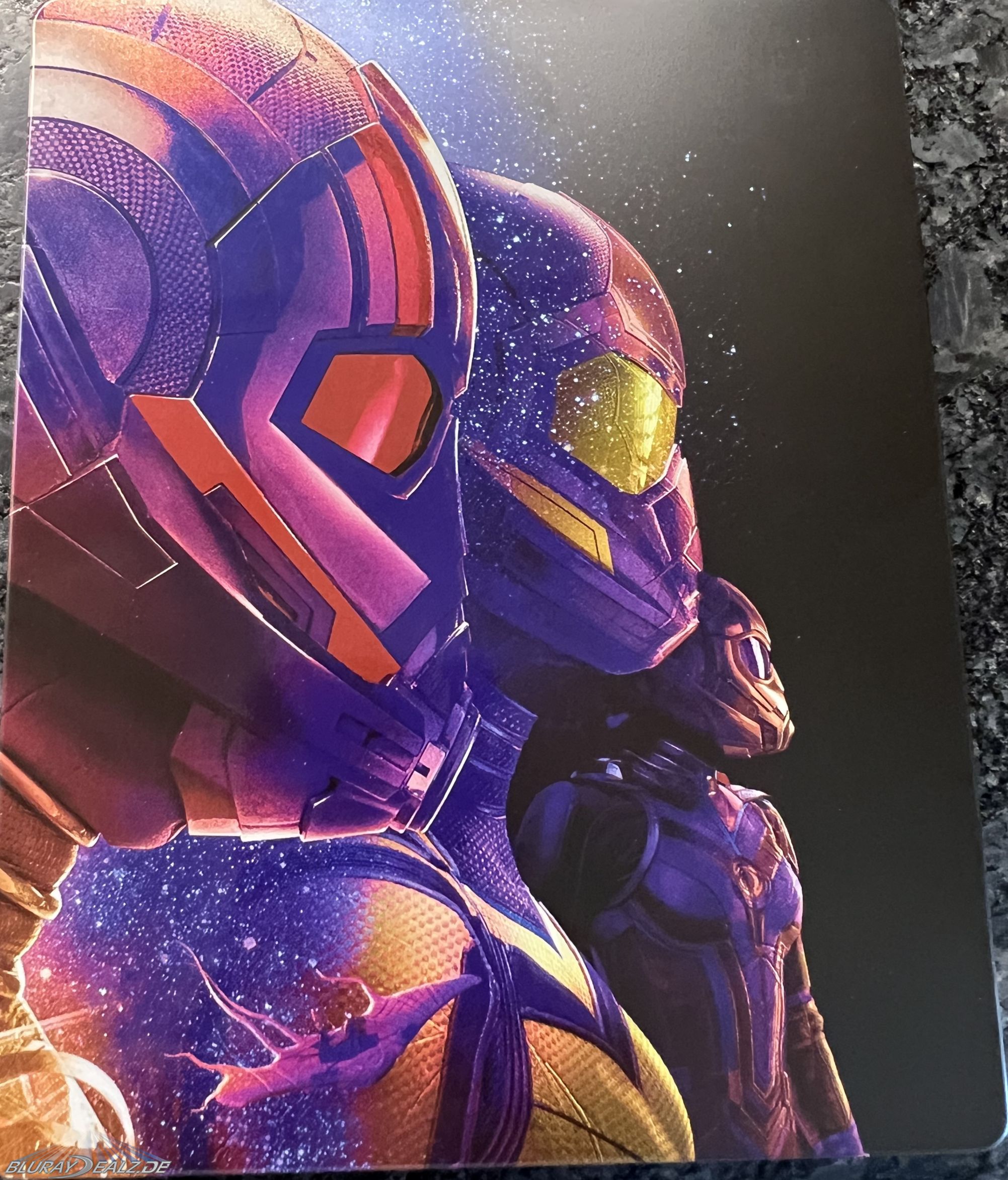 Die Discs sind unterschiedlich bedruckt und zum Glück nicht im langweiligen Blau gehalten. Auf der Blu-ray bekommen wir Kang, auf der UHD Kang und Ant-Man zu sehen. Auch hier hätte der Druck insgesamt noch etwas besser sein können, aber es ist nicht ganz so schlimm wie im Innenteil.