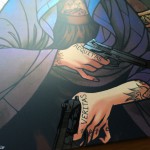 Das farbige Innencover zeigt erneut die Heilige Maria und die beiden „Boondock Saints“. Auf der rechten Seite ist zusätzlich ein großes Kruzifix angedeutet von dem man jedoch nur die untere Hälfte der Beine sieht.