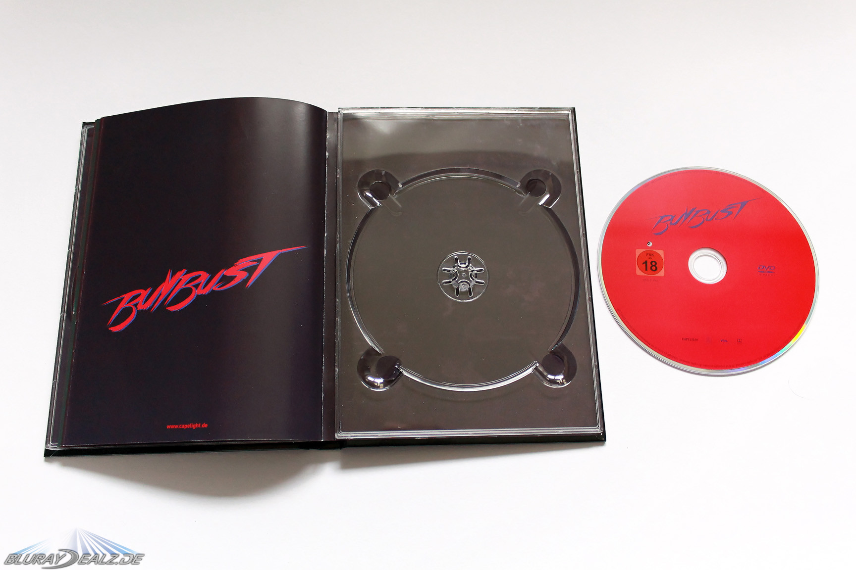 Der FSK-Aufkleber ist nur auf der Folie, damit entfallen lästige Klebespuren. Der Rückseitentext ist auf einer Pappkarte aufgedruckt, die nach dem Wenden Werbung für bisherige und kommende Capelight-Mediabooks zeigt. Die Karte lässt sich gut im Mediabook verstauen.