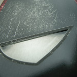 Glossy, Rahmenprägung, Titelschriftzug geprägt, Deadpool-Symbol geprägt (und zwar embossed und debossed), textfrei… einzig die Fingerabdruckempfindlichkeit ist natürlich störend, aber nimmt man hier gern in Kauf. Deadpool muss halt pfleglich behandelt werden ;) . Das Deadpool-Zeichen selber ist, nun ich sage mal „vintage“. Viele „Kratzer“ sind zu sehen, die aber beabsichtigt sind, da dies zum Zeichen selbst gehört.