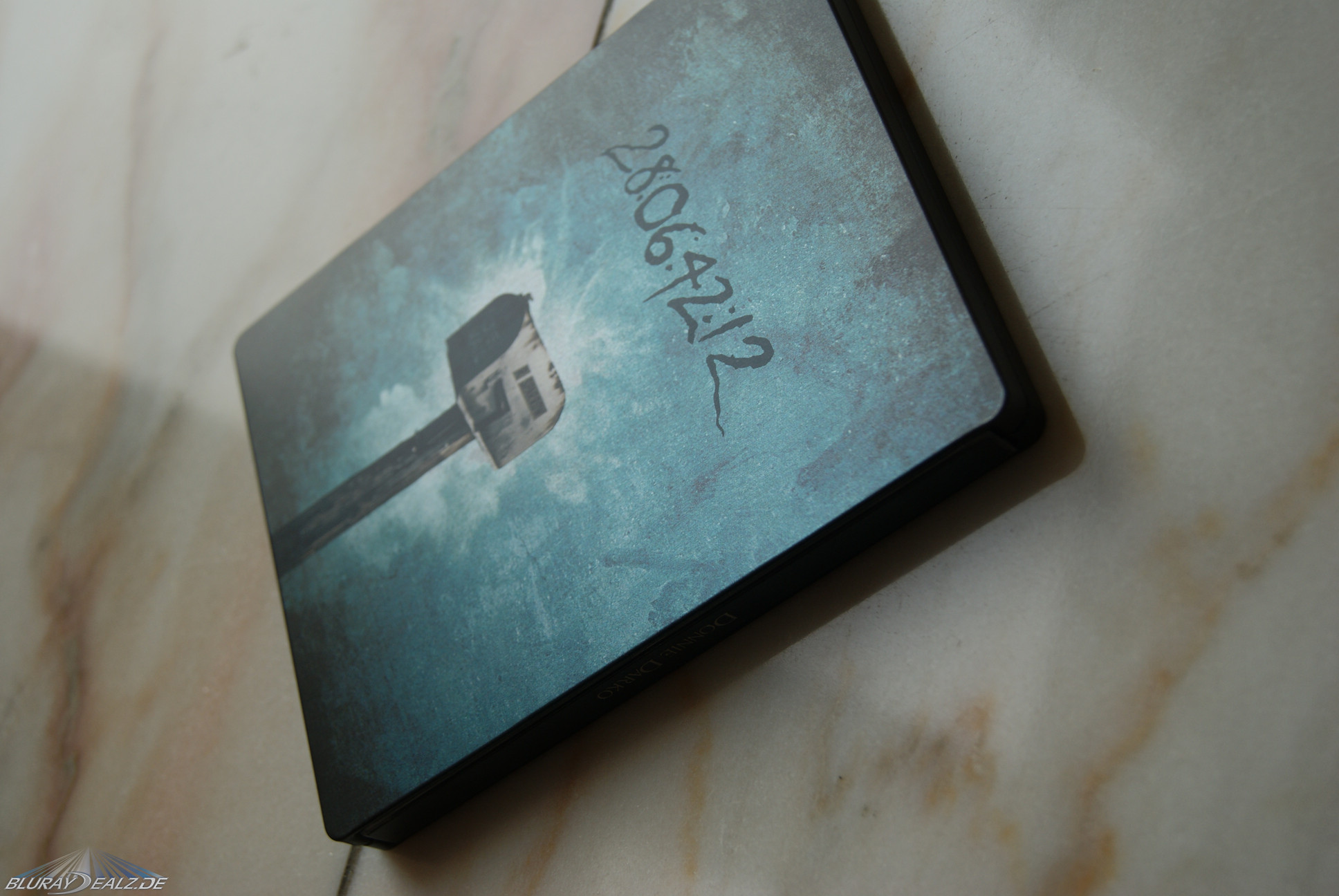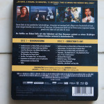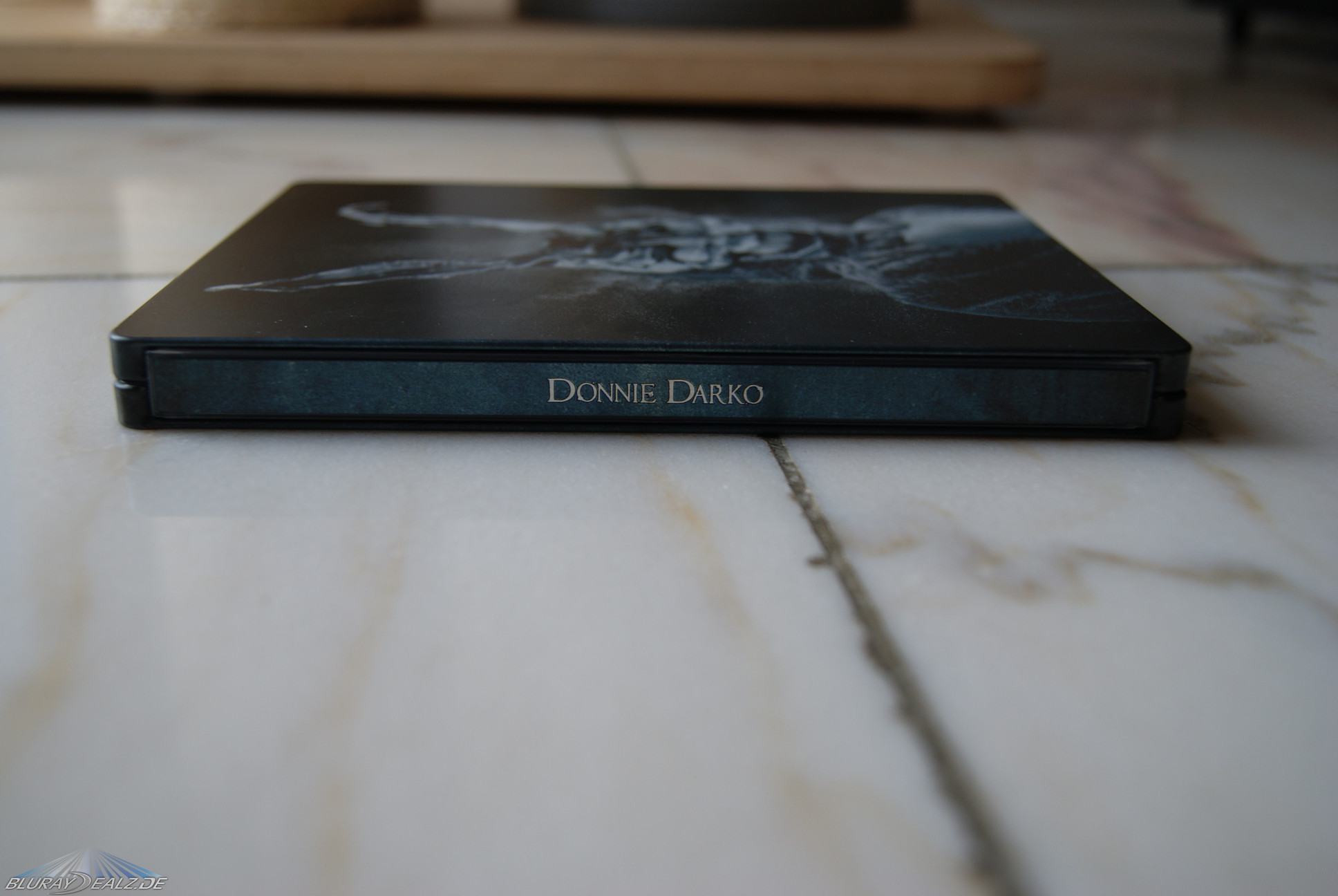 Am Ende stellt sich eine leichte Enttäuschung ein bei dem vorliegenden Donnie Darko Steelbook. Die Motivwahl auf Front und Back ist zwar schön düster und es ist schon erstaunlich wie man durch unterschiedliche Farben einen leichten Tiefeneffekt erreicht hat ohne Prägungen oder Spotgloss, aber eben das Fehlen von Spotgloss und Prägungen (ein schön geprägtes „Donnie Darko“, aber sogar der Titel selbst fehlt auf der Front) trübt den Eindruck. Das chromfarbene Innenmotiv glänzt zwar schön, aber auch da hätte man mehr erwartet…