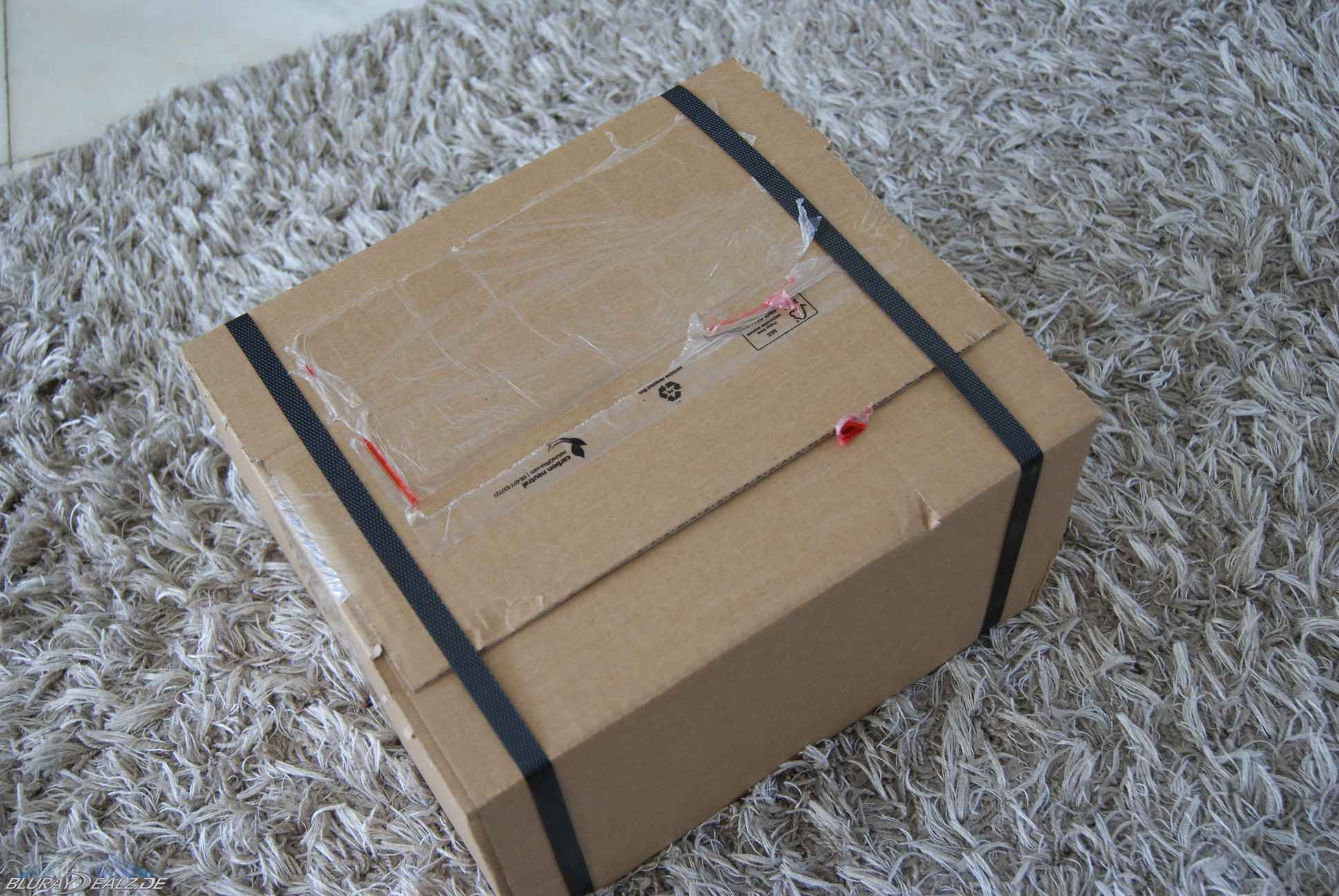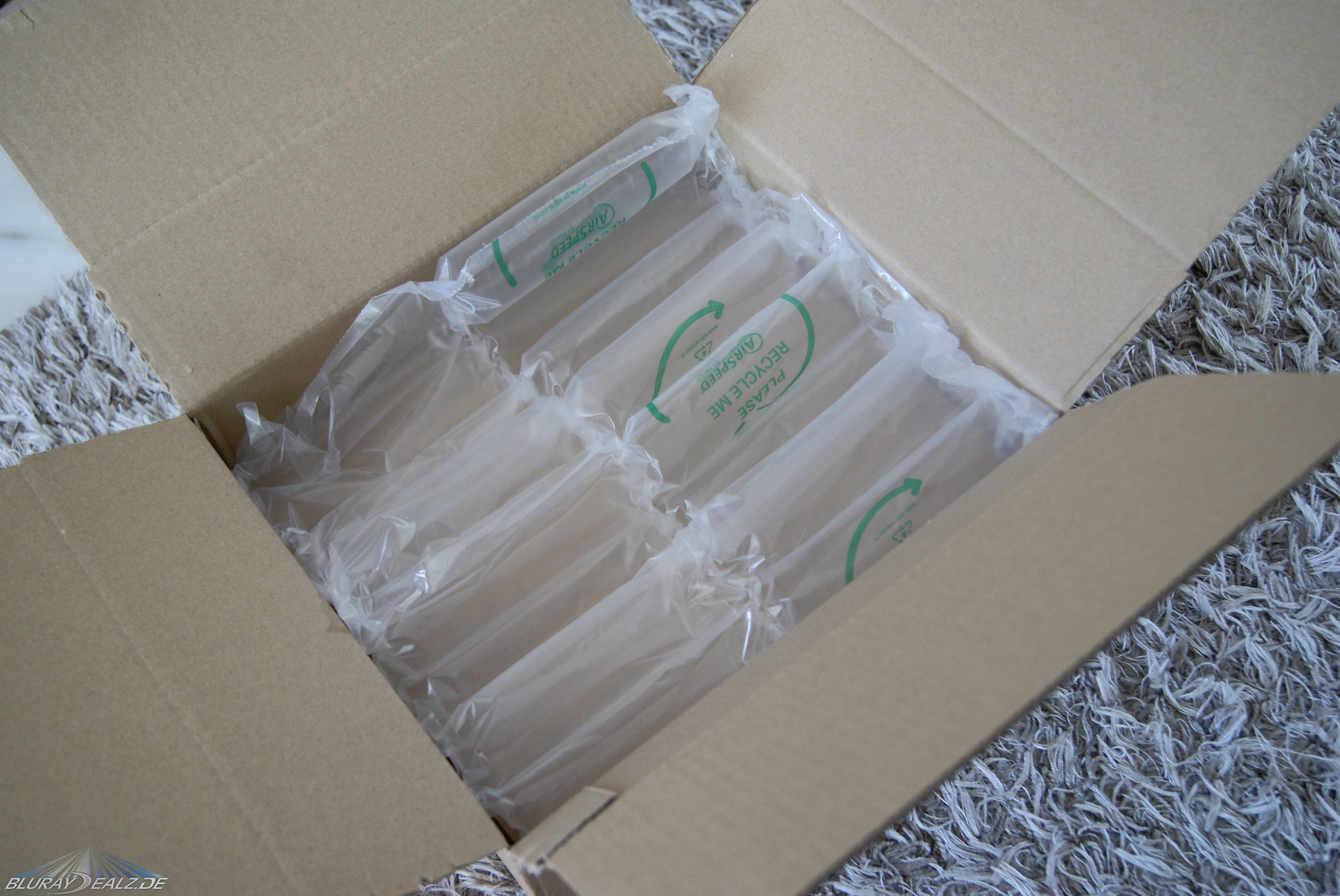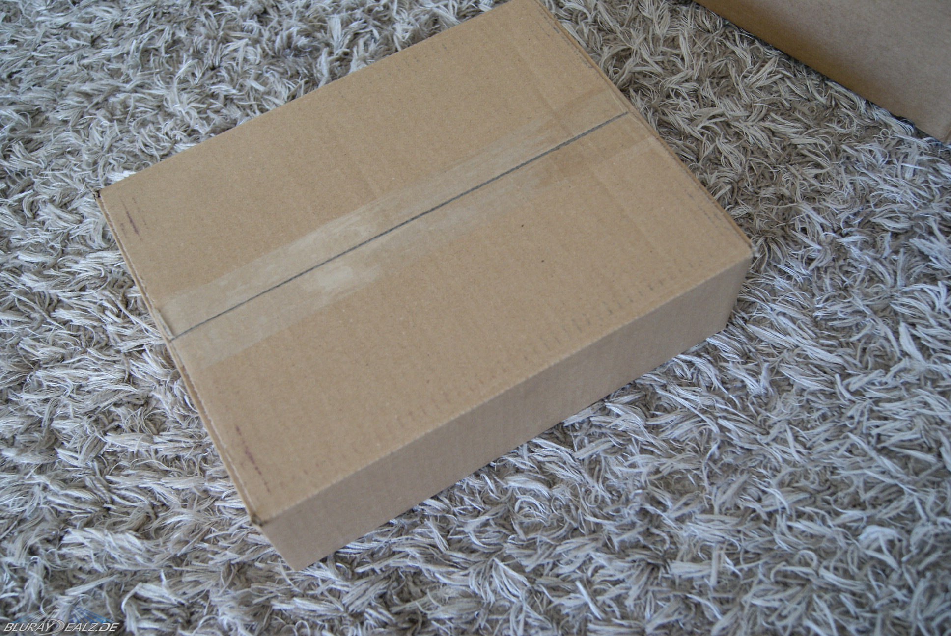 Die Vorfreude auf die Box steigt schon beim Öffnen des Versandkartonss. Eine Schicht dicker Luftpolsterfolie, dann von zwei Schichten Pappe geschützt das schicke Aluschild und die Dankeskarte. Darunter befindet sich ein separater Karton mit der Edition selbst – darin befindet sich dann die Box selbst…