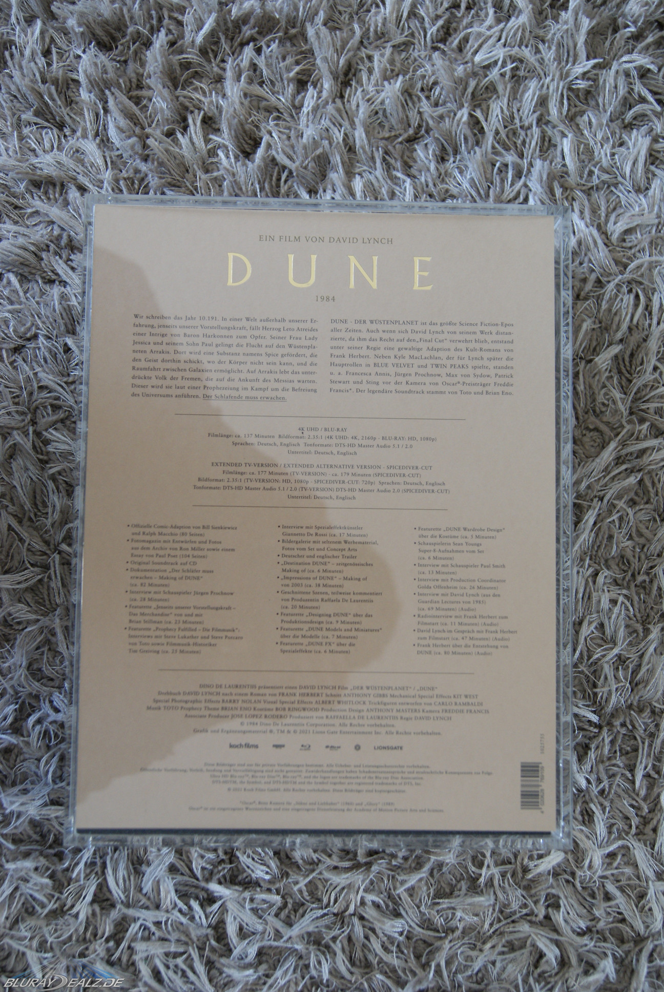 Einen nicht ganz so langen Weg wie die Romanreihe von Frank Herbert (siehe weiter unten) hat die Veröffentlichungsgeschichte der Ultimate Edition des David Lynch Klassikers „Dune – Der Wüstenplanet“ zwar nicht, aber es zog sich doch sehr lange hin… Mitte 2021 wurde diese Edition – zusammen mit den anderen Releases – diverse Mediabooks und ein Steelbook – gelistet und für Ende August 2021 angekündigt. Der Preis mit 99,99€ war und ist stolz, aber bei so einem Release ? Die Edition wurde vorbestellt und die (Vor-)Freude war groß. Doch einige Woche vor dem Termin wurde das Datum auf Mitte Oktober – insbesondere die mit Spannung erwartete neue Dokumentation wurde nicht rechtzeitig für den deutschen Markt fertig und so entschloss sich Koch Films für die Verschiebung. Im Oktober war es dann soweit und alles auf den Discs – doch es erschienen „leider“ nur die Einzel-VÖs, wie zum Beispiel dieses Mediabook. Wir Fans der Ultimate Edition wurden auf den 10. Februar vertröstet, da für aufwendige Produktion kein passender Dienstleister gefunden wurde, der die Qualitätsmaßstäbe von Koch Films erfüllen konnte. Dieser wurde dann ausgemacht und als Bonbon für die frühen Vorbesteller wurde eine erste Charge für Mitte Dezember angekündigt, nur für die Vorbesteller ! Doch auch das funktionierte nicht, das Releasedatum wurde dann für alle Besteller auf den 17. Februar 2022 verlegt. Als Belohnung für die frühen Vorbesteller, die auch früh in Vorkasse getreten waren, wurde ein exklusives A4-Aluschild zum Film produziert und jetzt – heute am 17. Februar – habe ich die Edition endlich in Händen. Ob sich die lange Wartezeit gelohnt hat, erfahrt ihr nach dieser „kleinen“ Vorgeschichte und den gleich folgenden Infos zu Film und Buch in dieser Review…