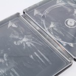 Entfernt man die Plastikschutzfolie sollte man die Jcard festhalten, denn diese ist überraschender Weise nicht angeklebt am Steelbook. Man wollte wohl direkt Kleberrückstände vermeiden auf der leicht glänzenden schwarzen Oberfläche. Schon hier ein positiver Eindruck, denn bei manchen Steelbooks muss der Kleber richtig abgekratzt werden.