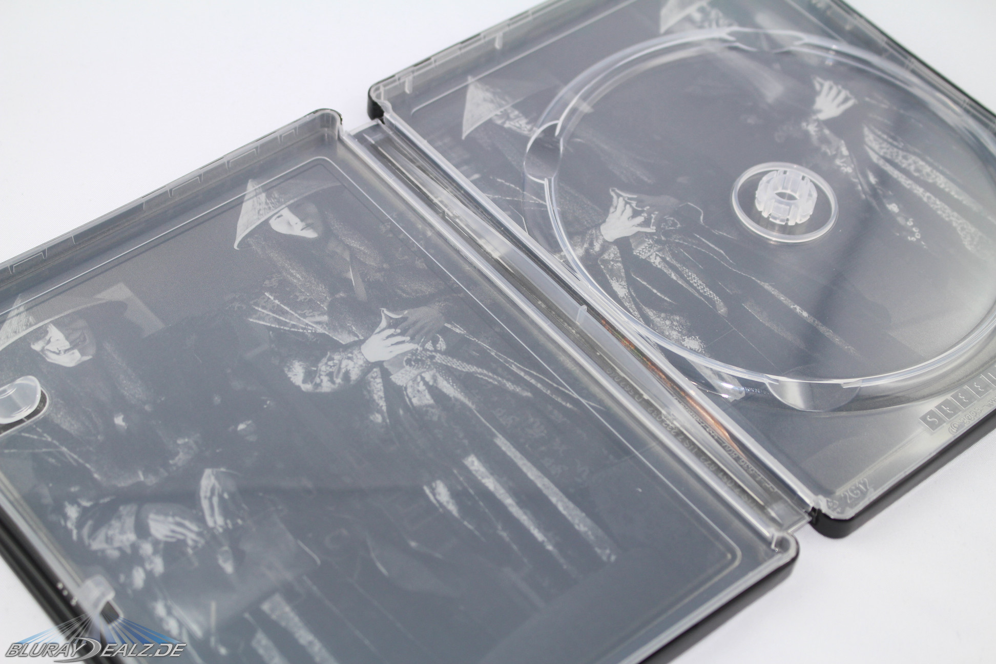 Die zweite positive Überraschung ist, dass der Schriftzug auf dem Frontcover geprägt ist! Aber dazu gleich mehr. Einen Hinweis möchte ich noch gerne zur Jcard geben. Dort wird informiert über einen innenliegenden Code einer UltraVioletCopy. Bei der damaligen Vorbestellung war dies noch nicht angegeben. Amazon hat heute den Titel gleich um diesen Zusatz ergänzt. Der Code selbst ist auf der Blu-ray Disc drauf und nicht wie üblich auf einem Beiblatt im Steelbook. Es gibt zwar ein Beiblatt, aber dies ist nur die Anleitung zum Einlösen des Codes.