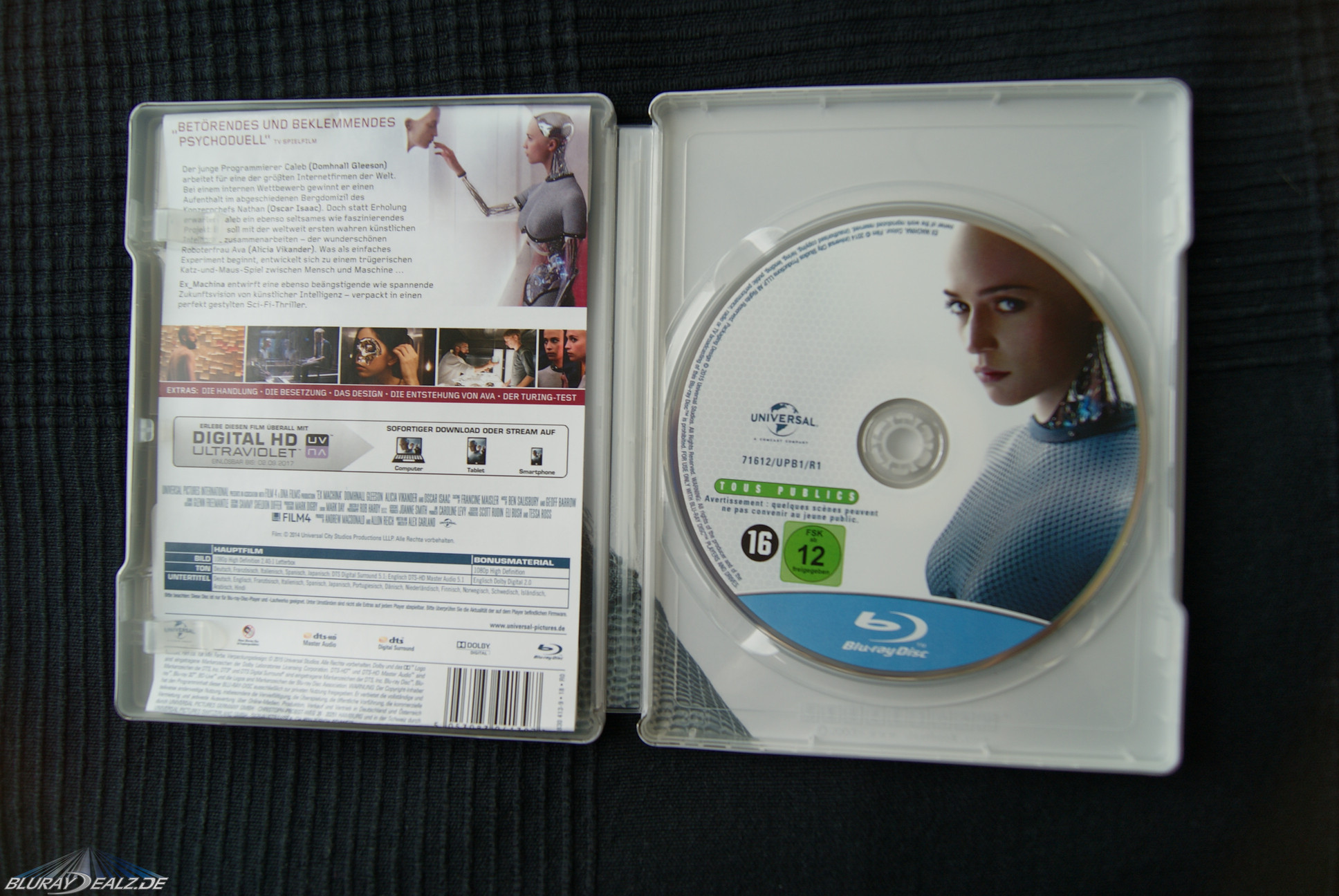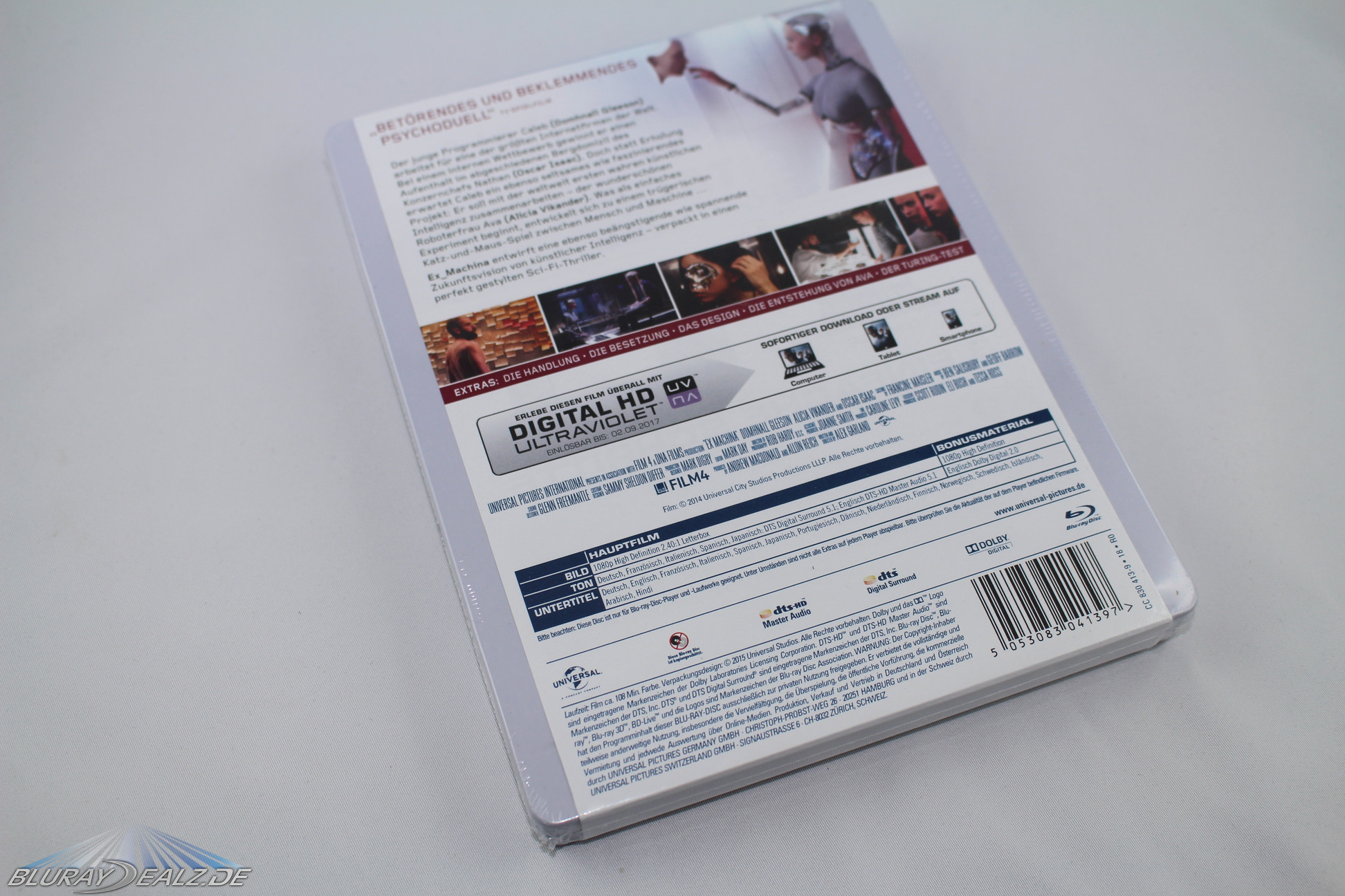 „Ex Machina“ ist ein britischer Film aus dem Jahr 2015 und das Regiedebüt von Drehbuchautor Alex Garland („28 days later“, „Sunshine“, „The Beach“). In den Hauptrollen wirken Oscar Isaacs, Domhnall Gleeson und Alicia Vikander mit. Seine deutsche Kinopremiere feierte er am 23. April 2015, die Heimkinoauswertung folgte am 3. September. Der Film hat eine Freigabe „ab 12 Jahren“. Herausgeber ist Universal, die in letzter Zeit diverse sehr schöne Steelbooks herausgebracht haben und dies jetzt bei „Ex Machina“ fortsetzen.